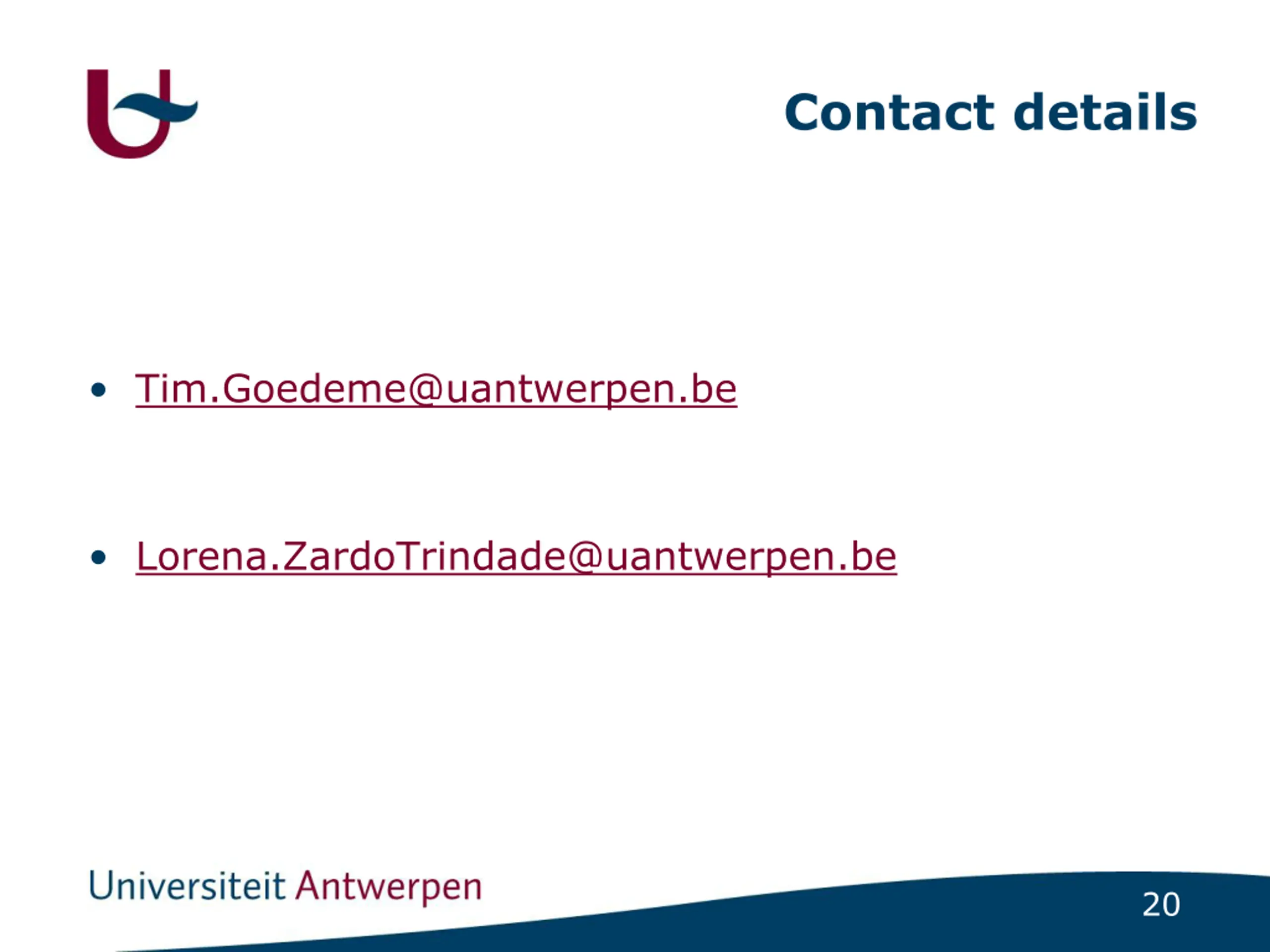 Contact details Tim.Goedeme@uantwerpen.be Lorena.ZardoTrindade@uantwerpen.be 20