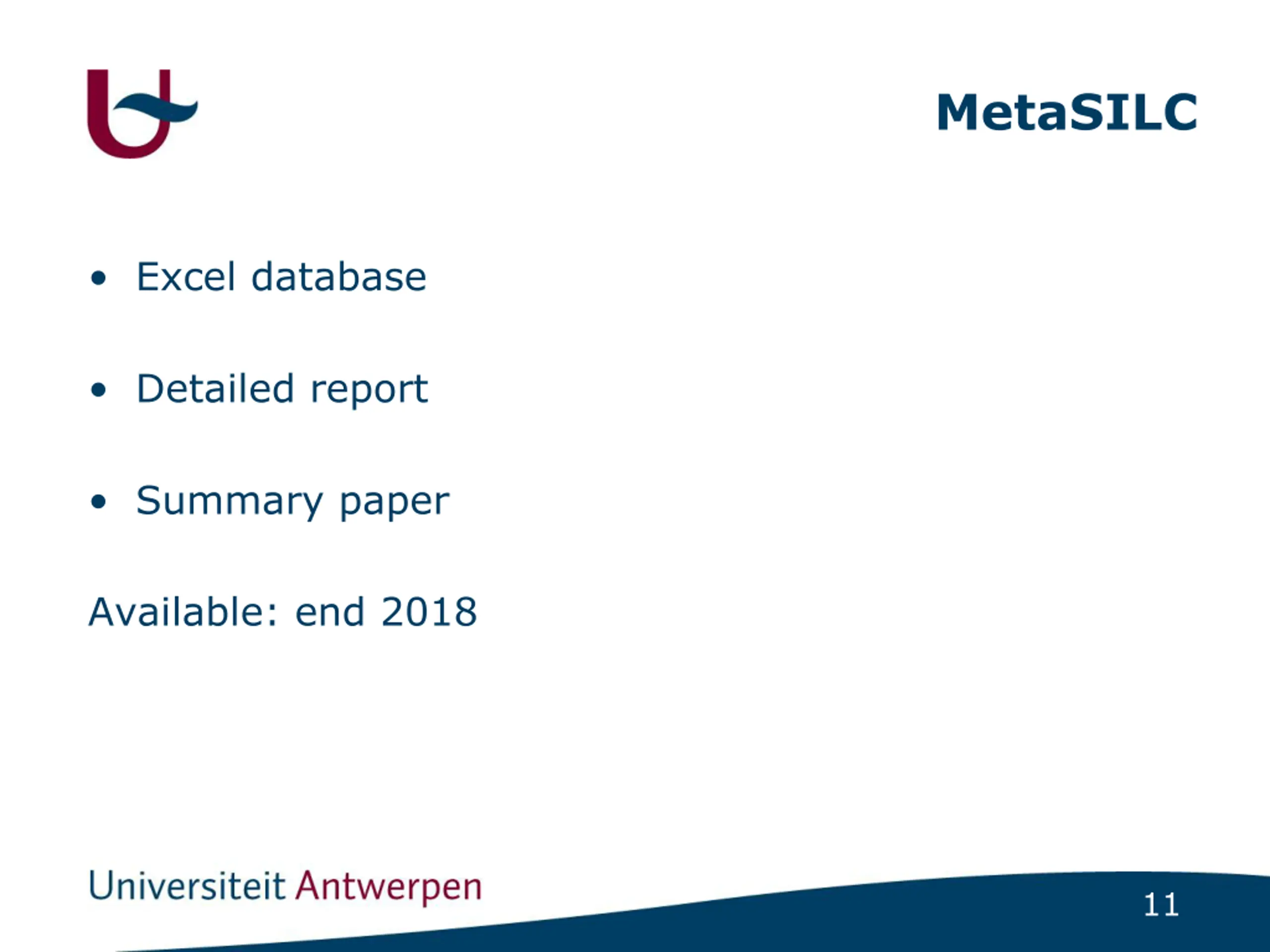 MetaSILC Excel database Detailed report Summary paper Available: end 2018 11
