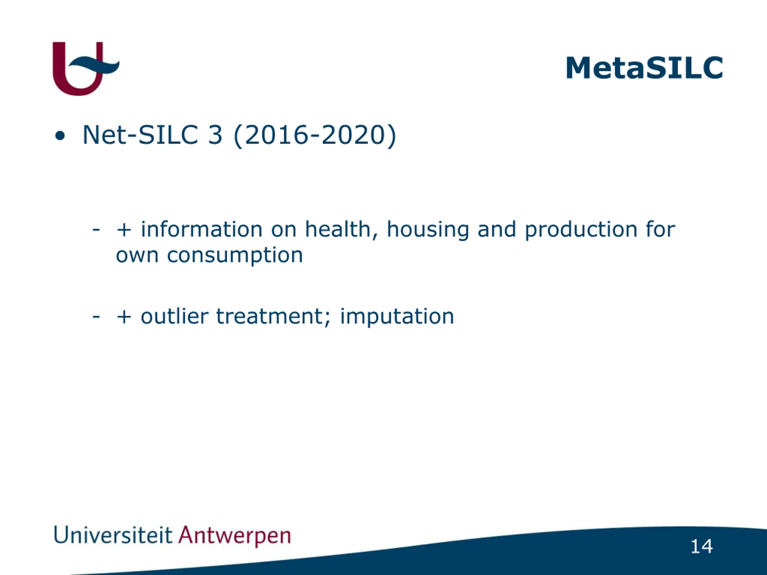 MetaSILC Net-SILC 3 (2016-2020) - + information on health, housing and production for own consumption - + outlier treatment; imputation 14