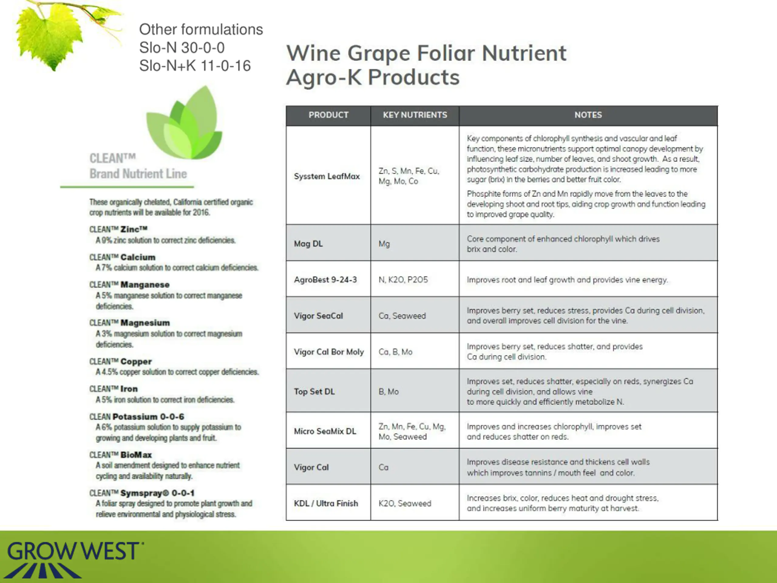 Other formulations Slo-N 30-0-0 Slo-N+K 11-0-16