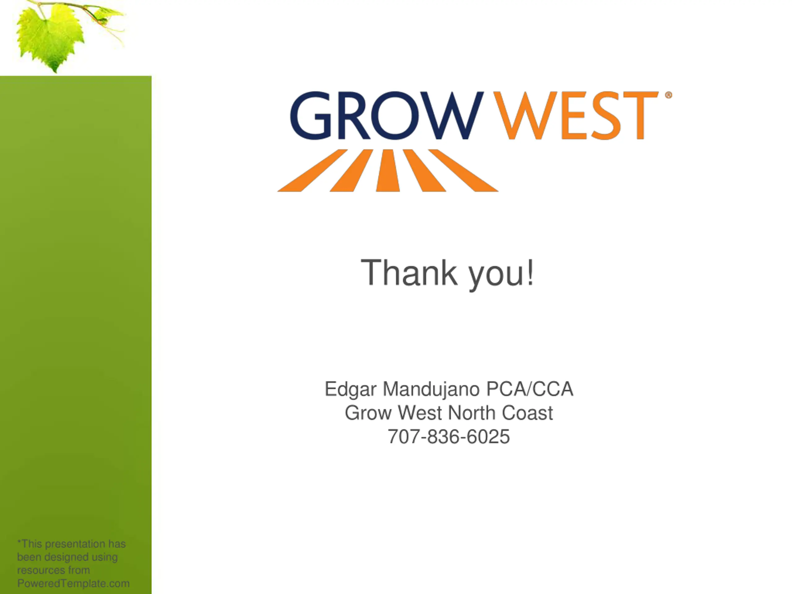 Thank you! Edgar Mandujano PCA/CCA Grow West North Coast 707-836-6025 *This presentation has been designed using resources from PoweredTemplate.com