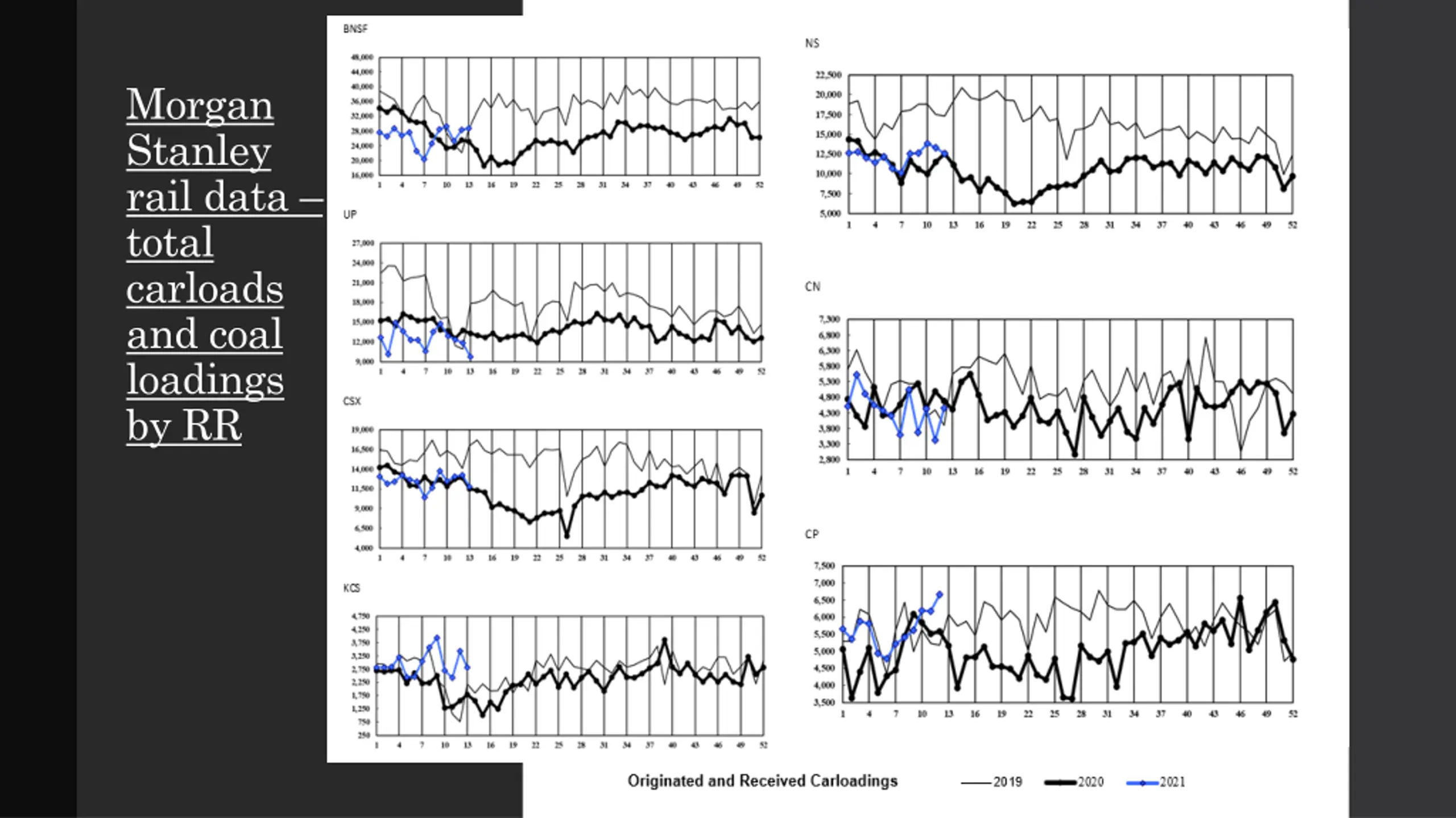 Morgan Stanley rail data total carloads and coal loadings by RR