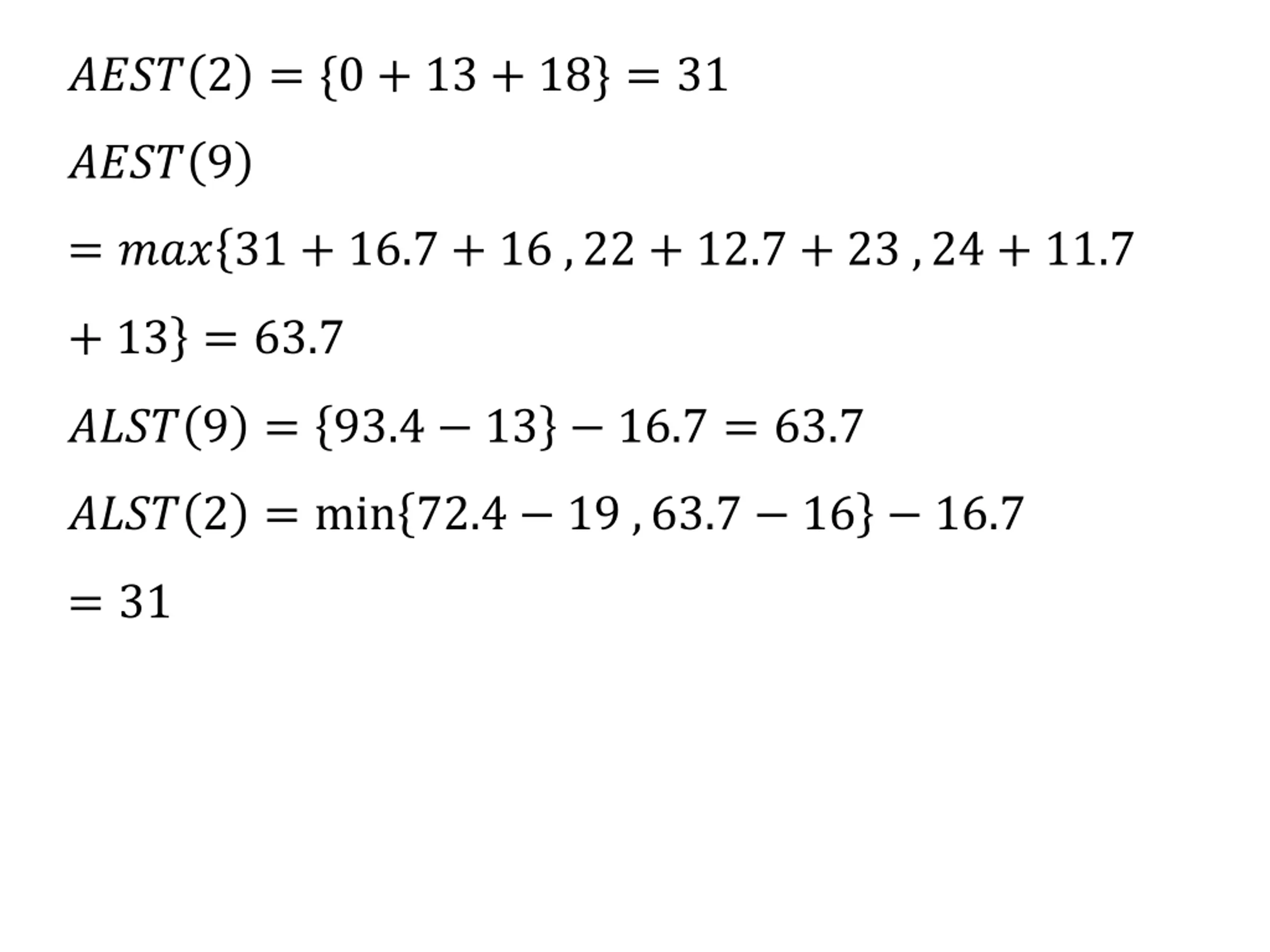 ???? 2 = {0 + 13 + 18} = 31 ???? 9 = ???{ 31 + 16.7 + 16 ,22 + 12.7 + 23 ,24 + 11.7 } + 13 = 63.7 ???? 9 = 93.4 13 16.7 = 63.7 ???? 2 = min 72.4 19 ,63.7 16 16.7 = 31