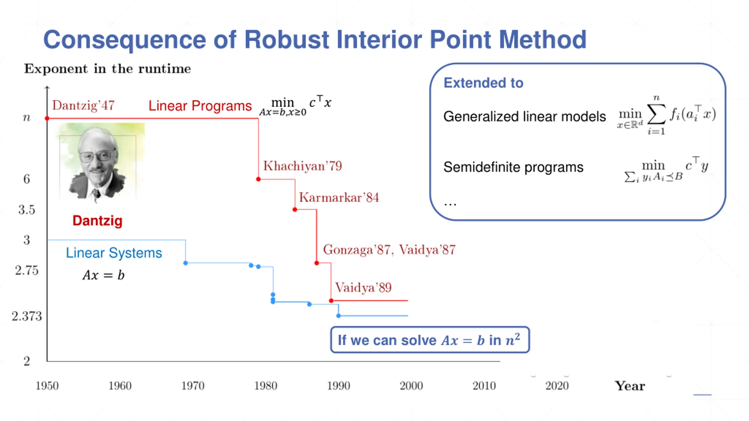 Consequence of Robust Interior Point Method Extended to ??=?,? 0? ? min Linear Programs Generalized linear models Semidefinite programs Dantzig Linear Systems ?? = ? If we can solve ?? = ? in ??