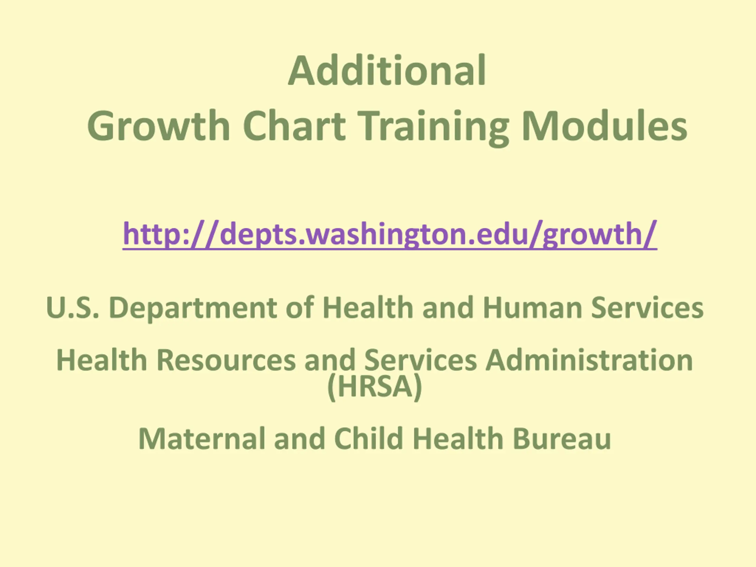 Additional Growth Chart Training Modules http://depts.washington.edu/growth/ U.S. Department of Health and Human Services Health Resources and Services Administration (HRSA) Maternal and Child Health Bureau