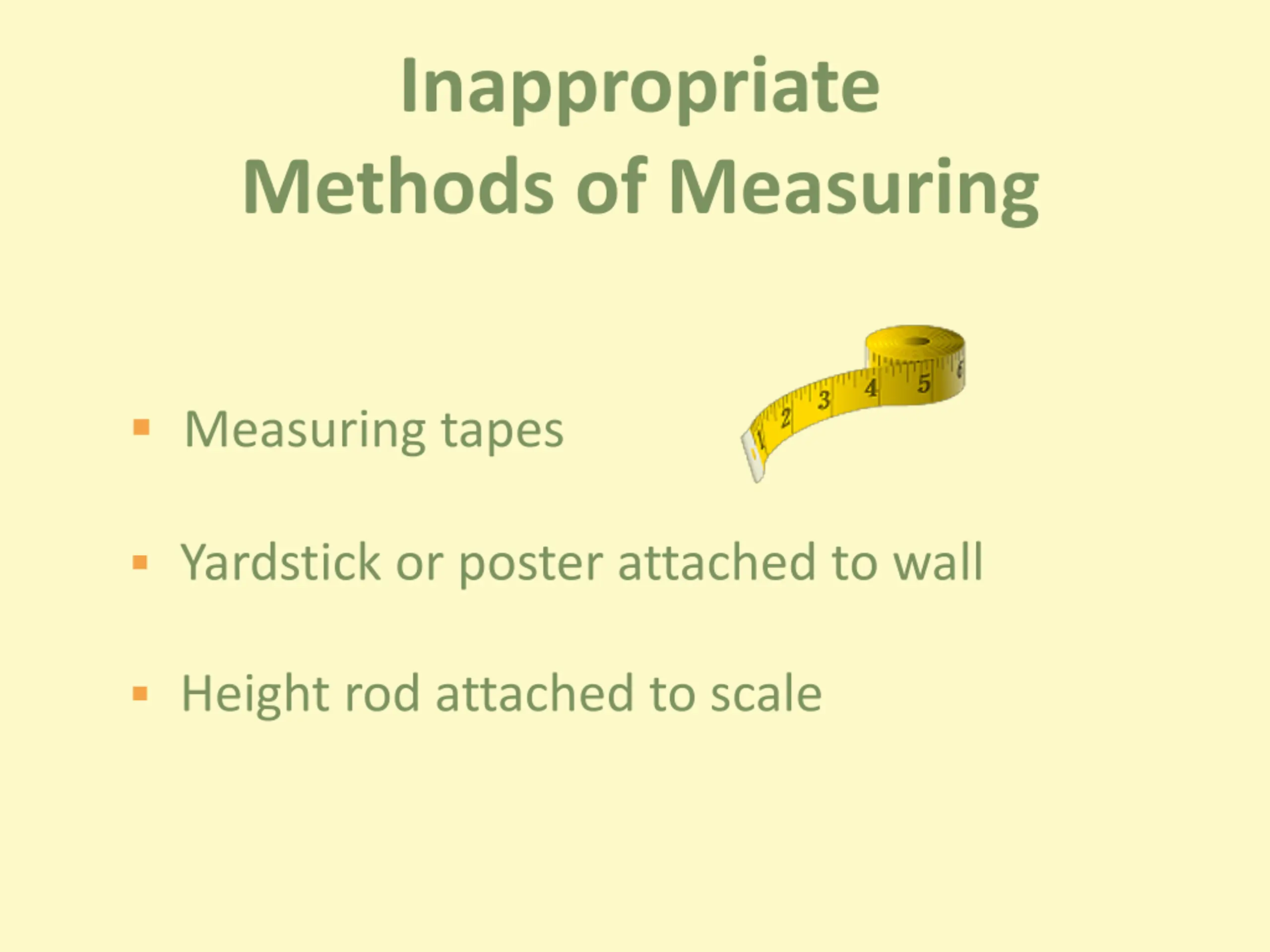 Inappropriate Methods of Measuring Measuring tapes Yardstick or poster attached to wall Height rod attached to scale