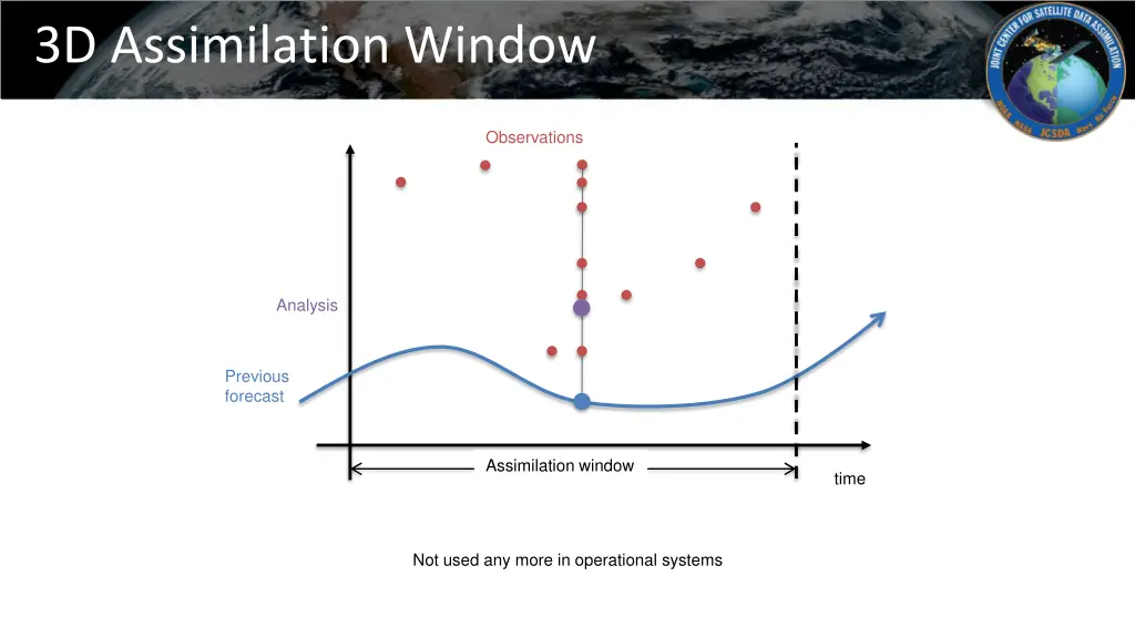 3D Assimilation Window Observations Analysis Previous forecast Assimilation window time Not used any more in operational systems