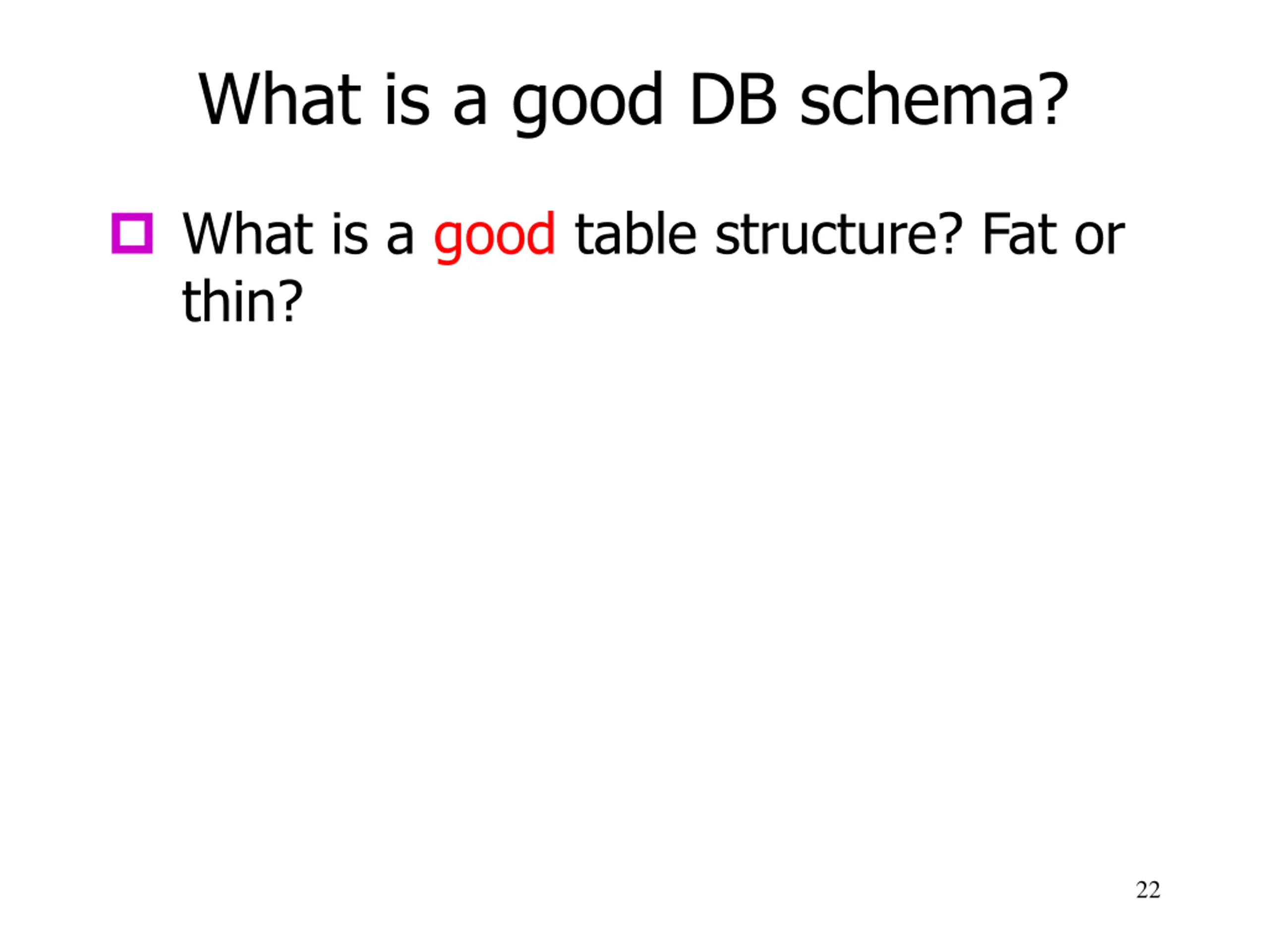 What is a good DB schema? What is a good table structure? Fat or thin? 22