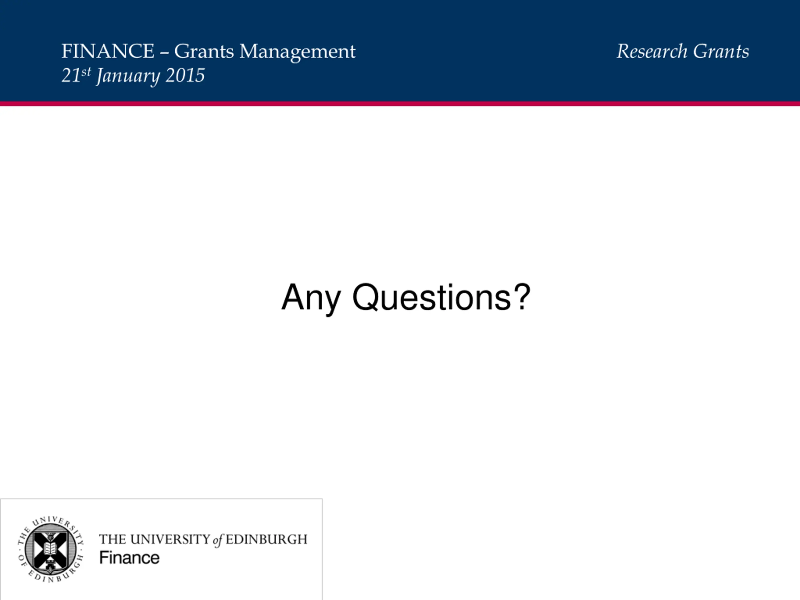 FINANCE Grants Management 21st January 2015 Research Grants Any Questions?