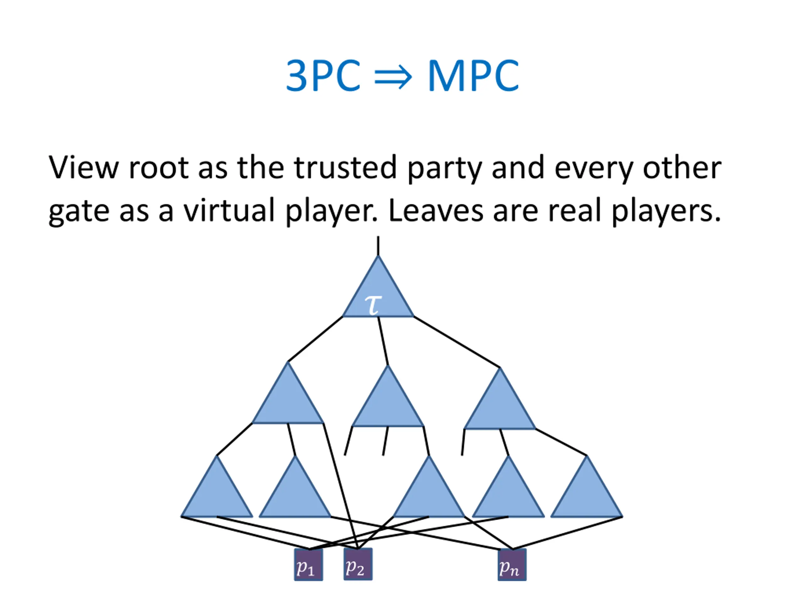3PC MPC View root as the trusted party and every other gate as a virtual player. Leaves are real players. ? ?2 ?1 ??