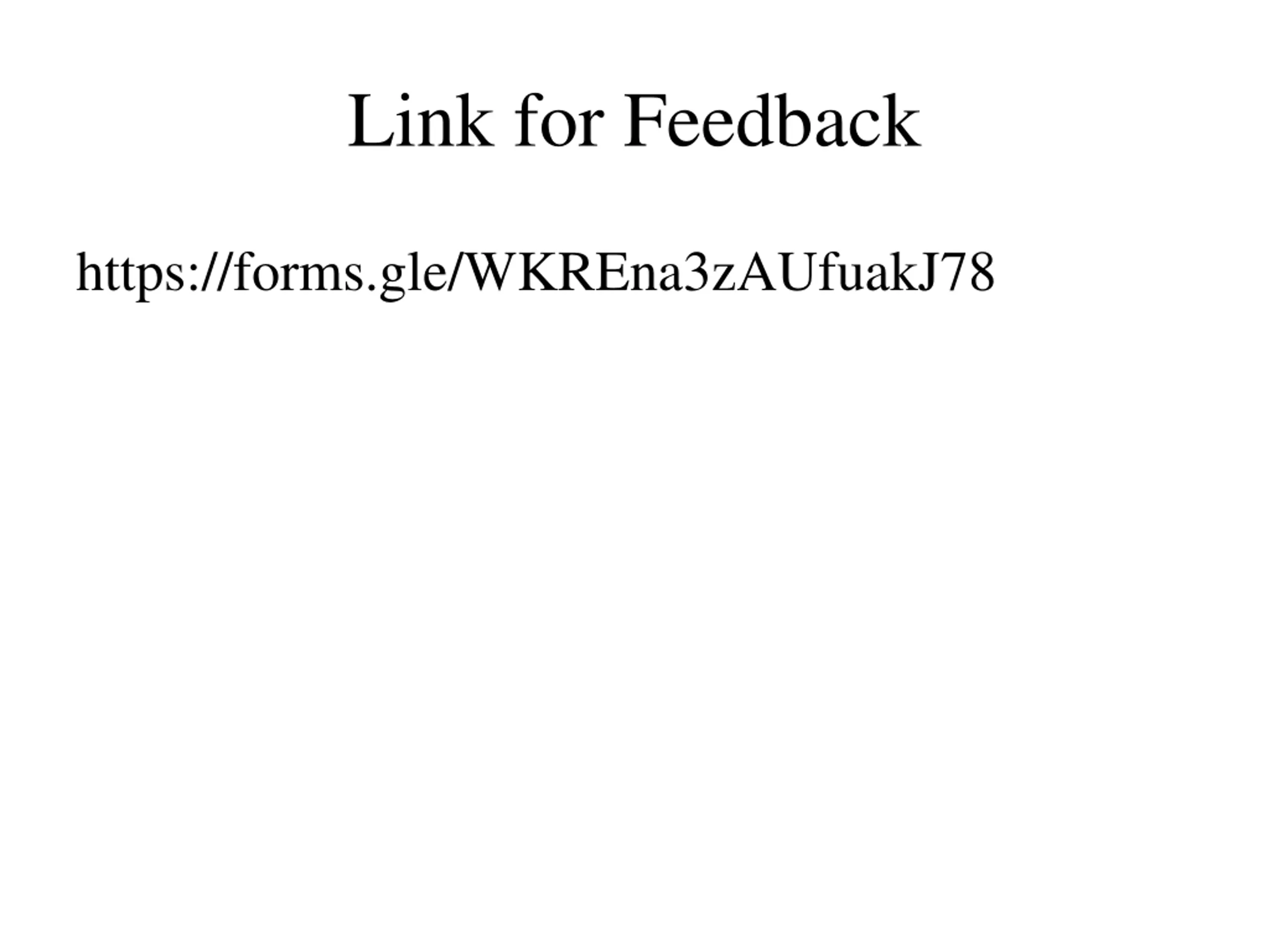Link for Feedback https://forms.gle/WKREna3zAUfuakJ78