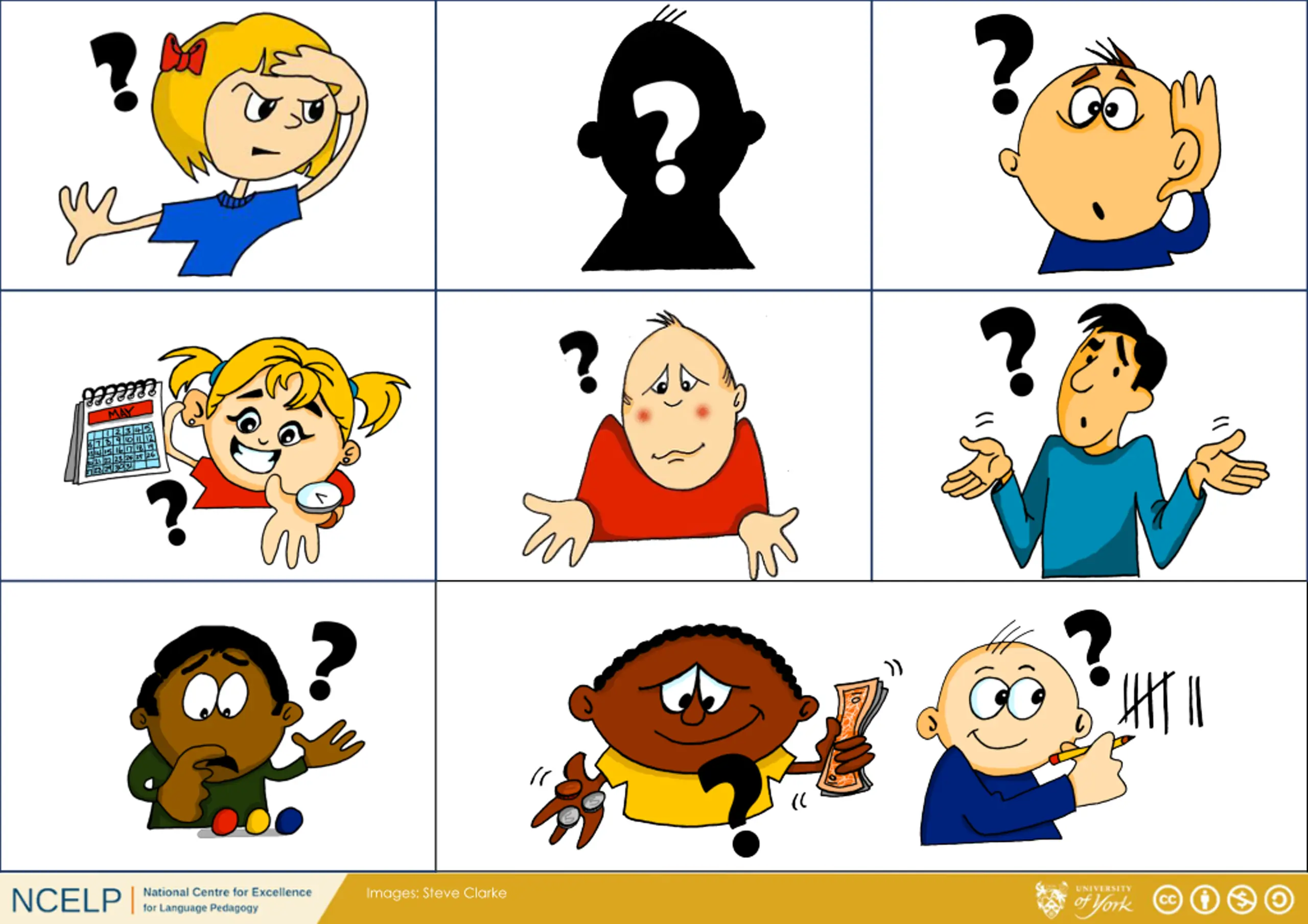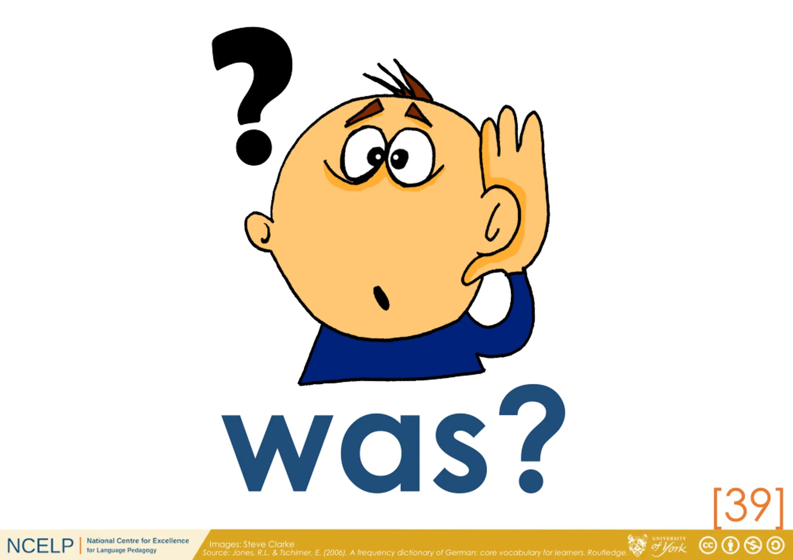 [94] [39] [173] was? wo? wer? [246] [28] [583] warum? wie? wann? [138] [28/60] [28/60] wie viele? wie viel? welcher ? Images: Steve Clarke Source: Jones, R.L. & Tschirner, E. (2006). A frequency dictionary of German: core vocabulary for learners. Routledge.
