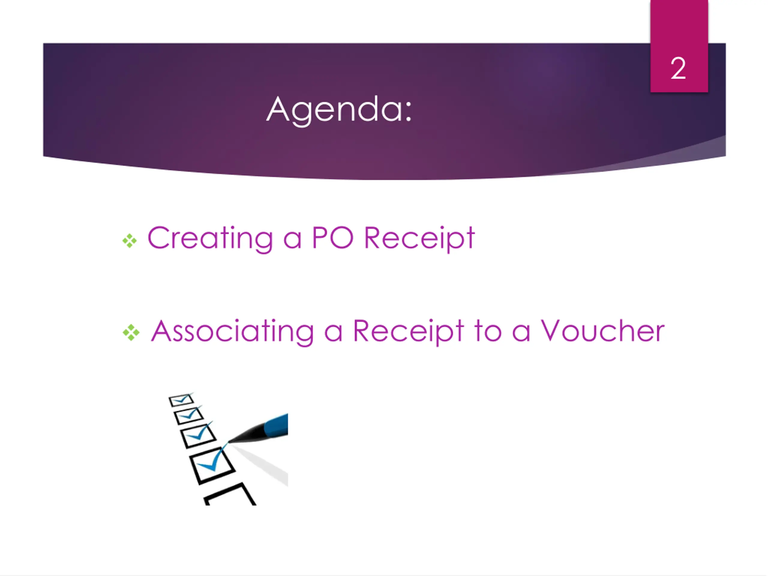 2 Agenda: Creating a PO Receipt Associating a Receipt to a Voucher