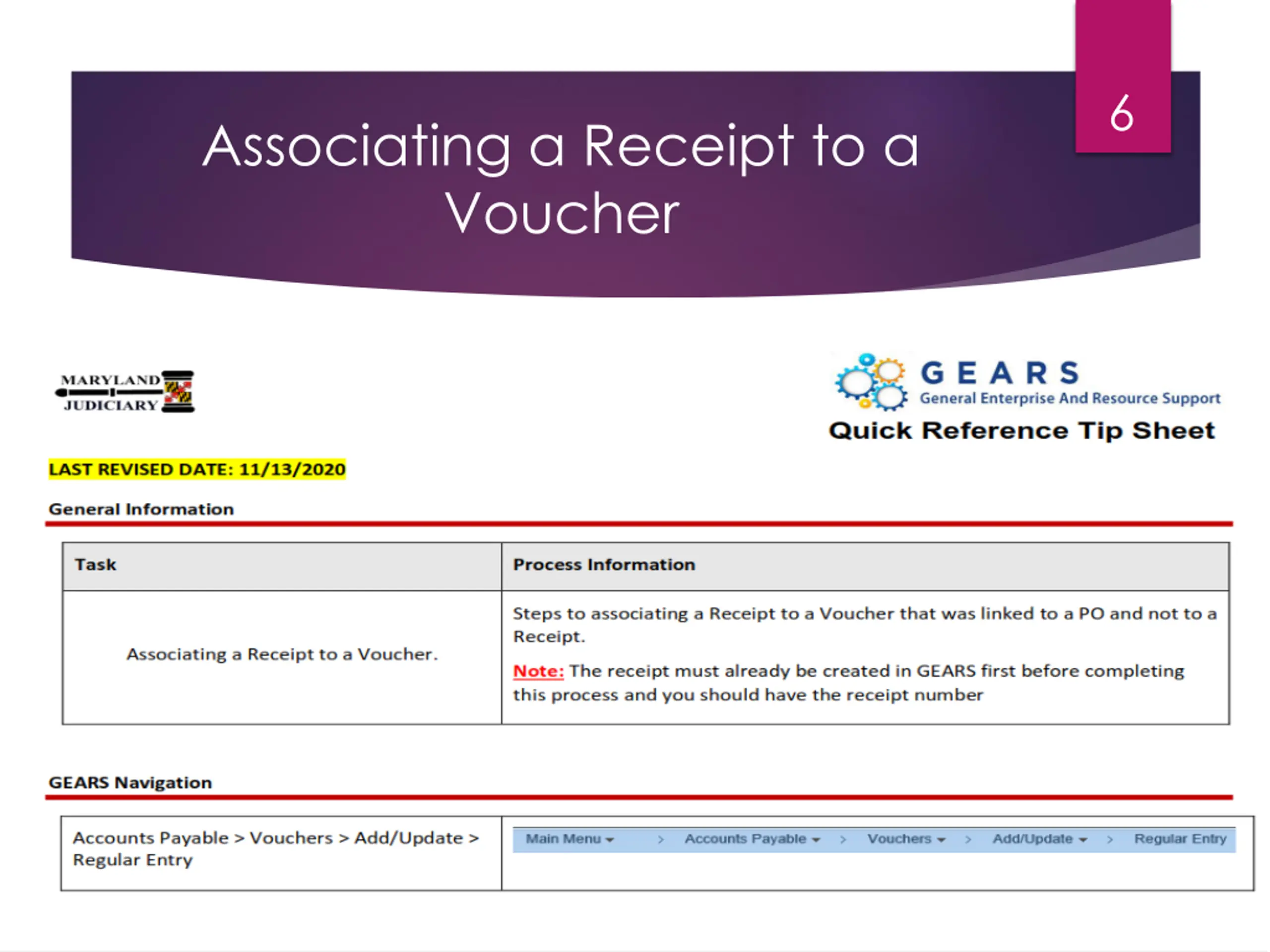 6 Associating a Receipt to a Voucher Receipt Voucher error