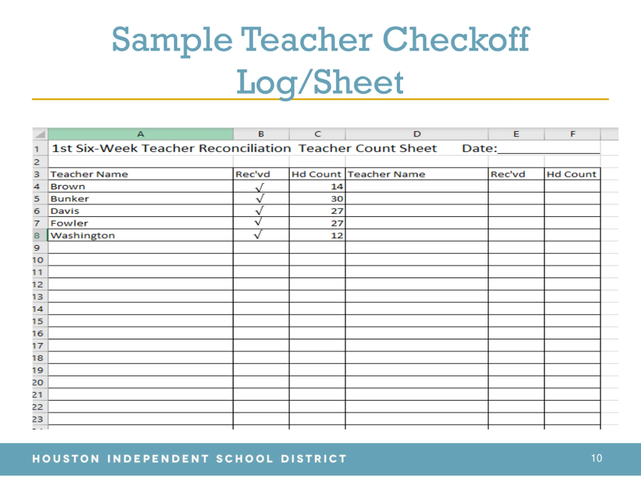 Sample Teacher Checkoff Log/Sheet 10