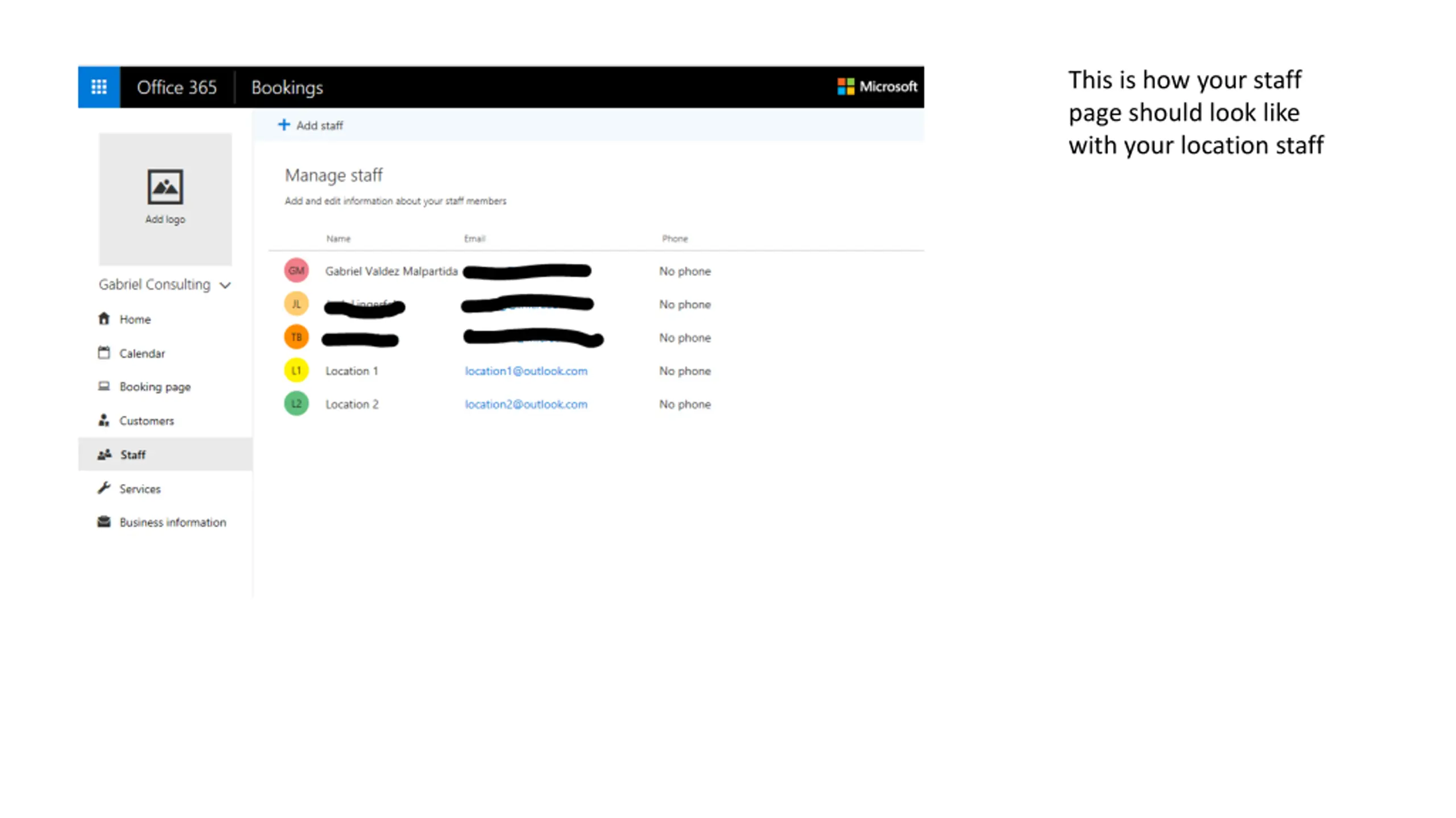This is how your staff page should look like with your location staff