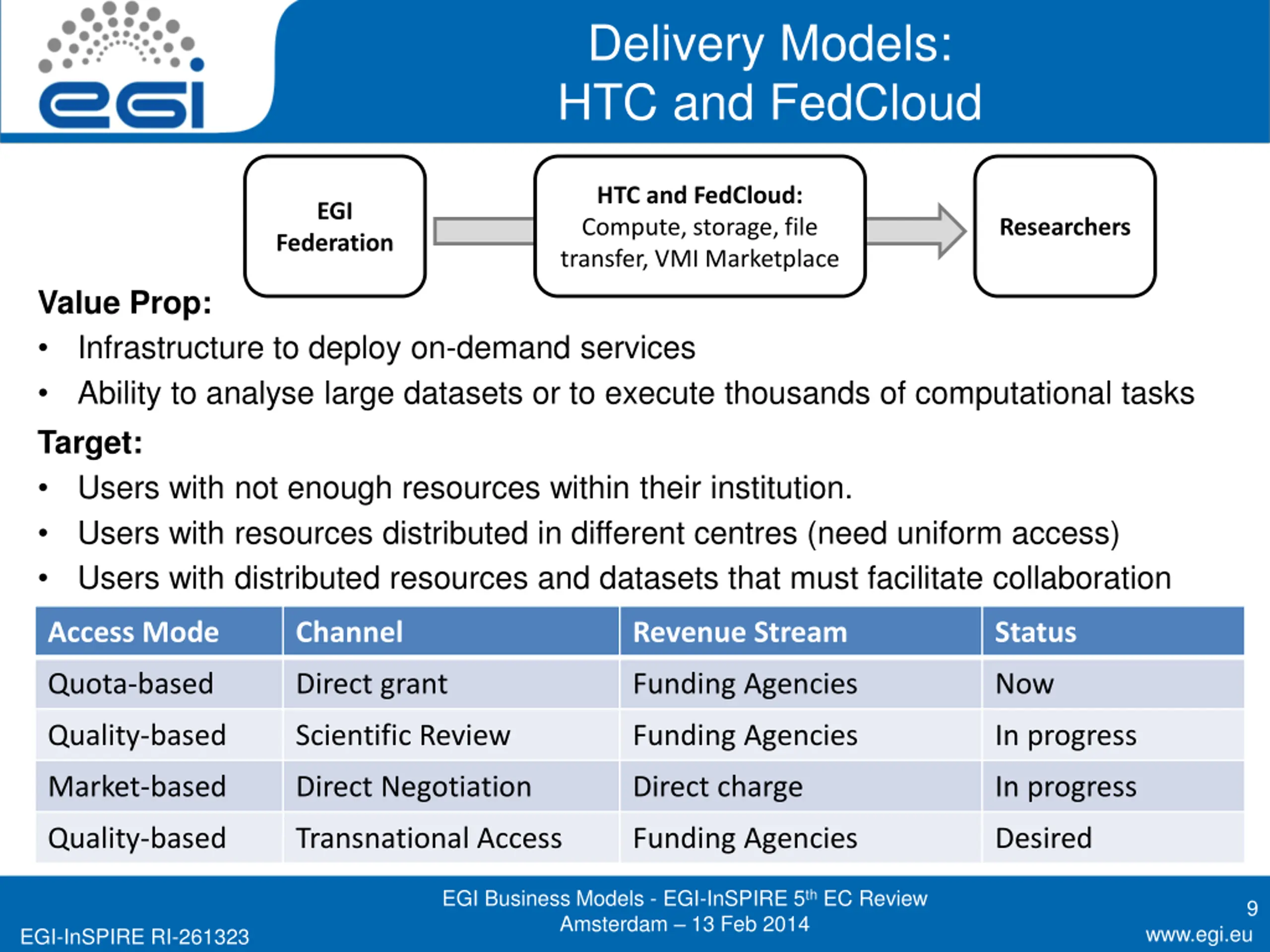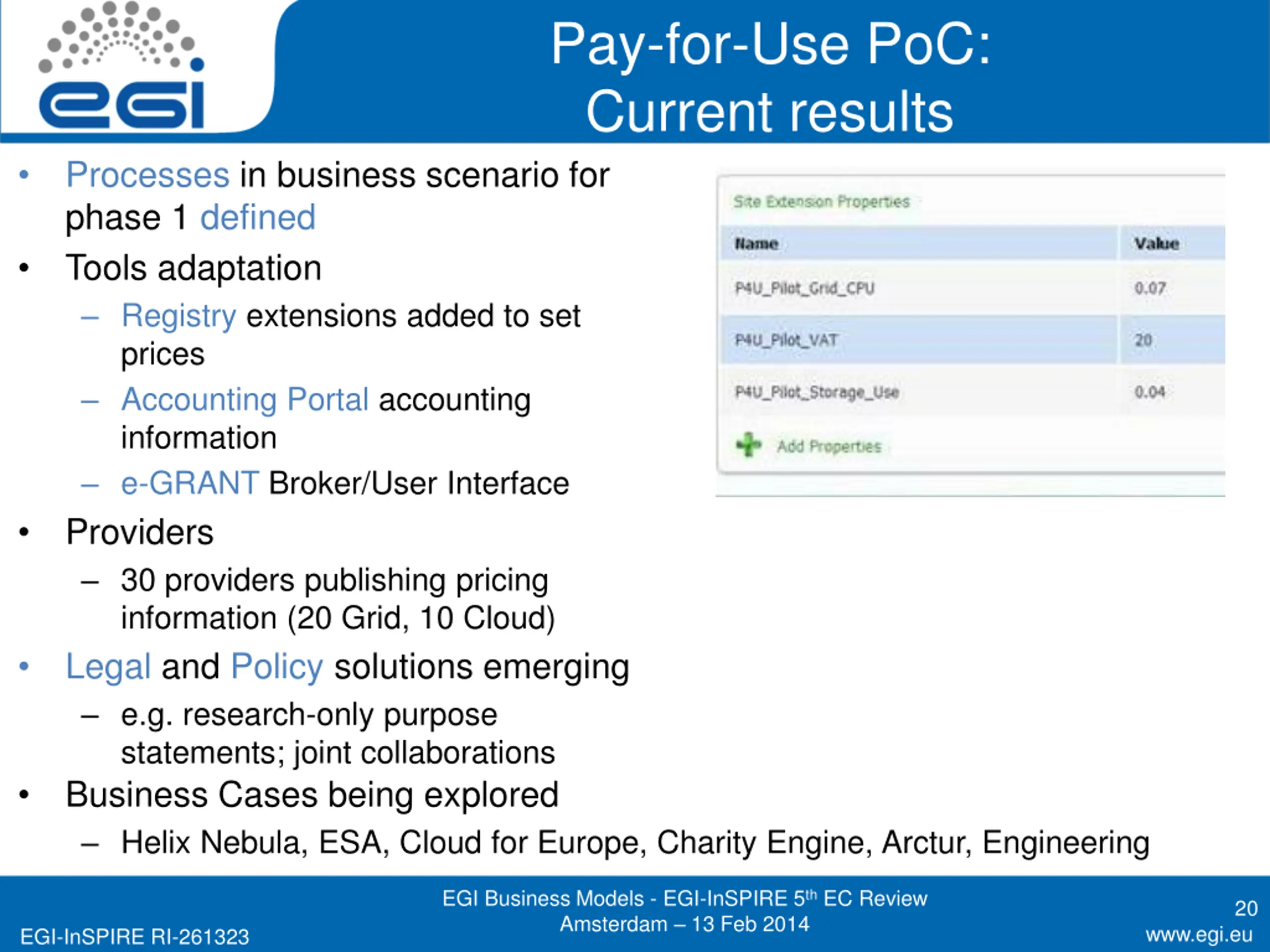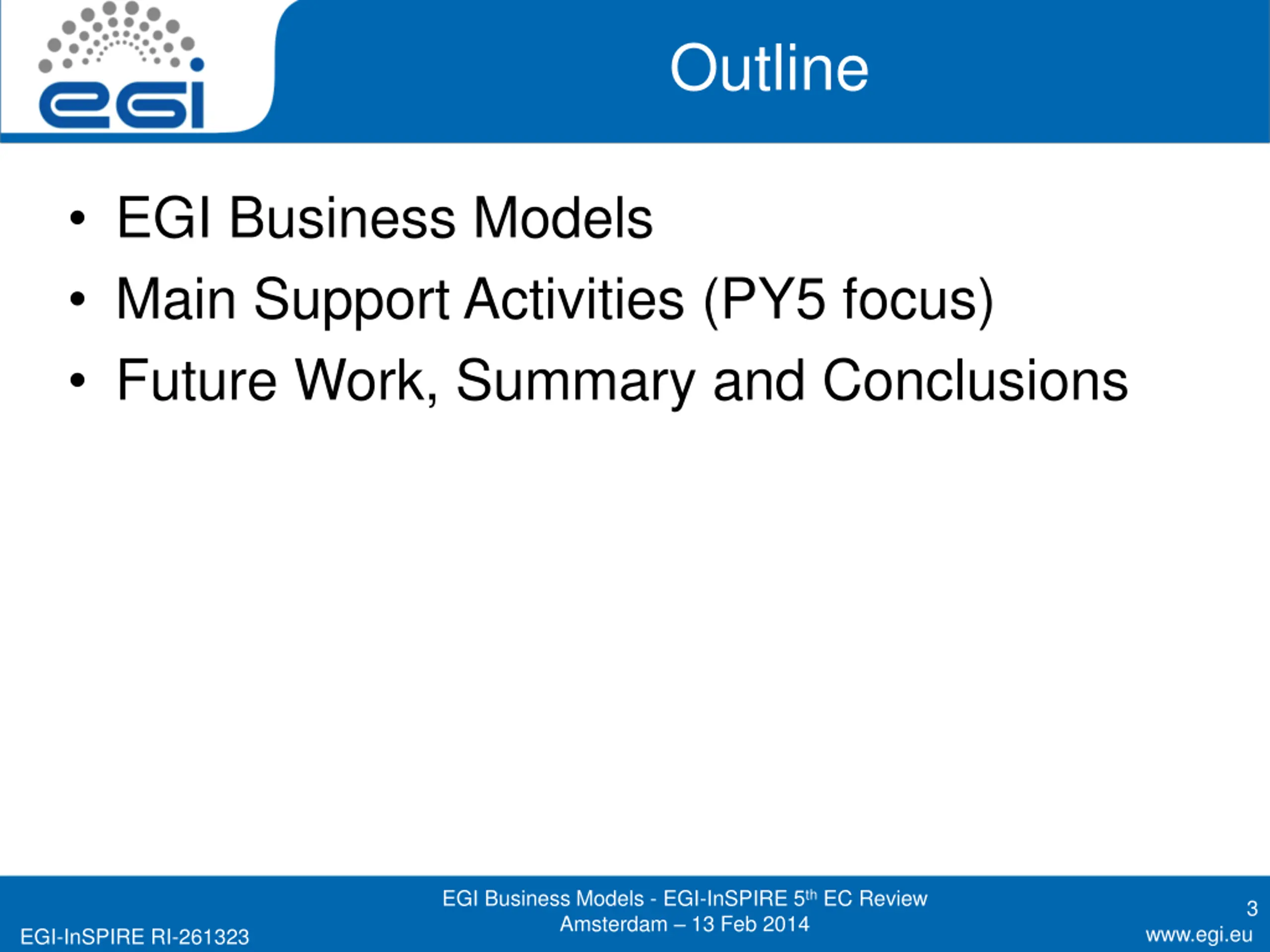 Members of the EGI-InSPIRE collaboration thank the EC for supporting EGI EGI Business Models - EGI-InSPIRE 5th EC Review Amsterdam 13 Feb 2014 32 www.egi.eu EGI-InSPIRE RI-261323