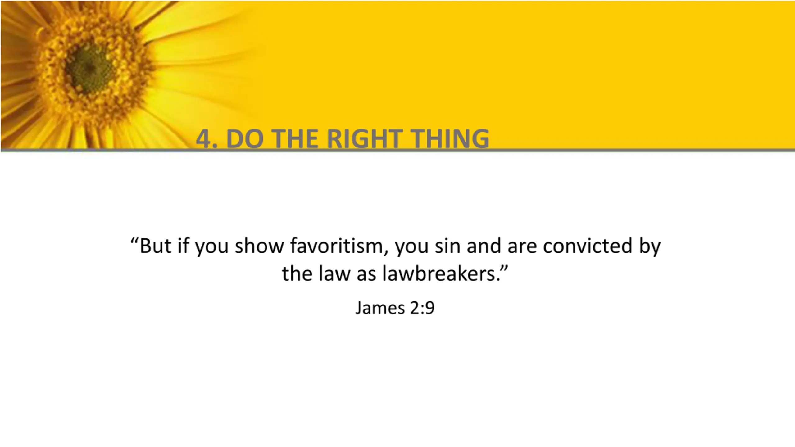 4. DO THE RIGHT THING But if you show favoritism, you sin and are convicted by the law as lawbreakers. James 2:9