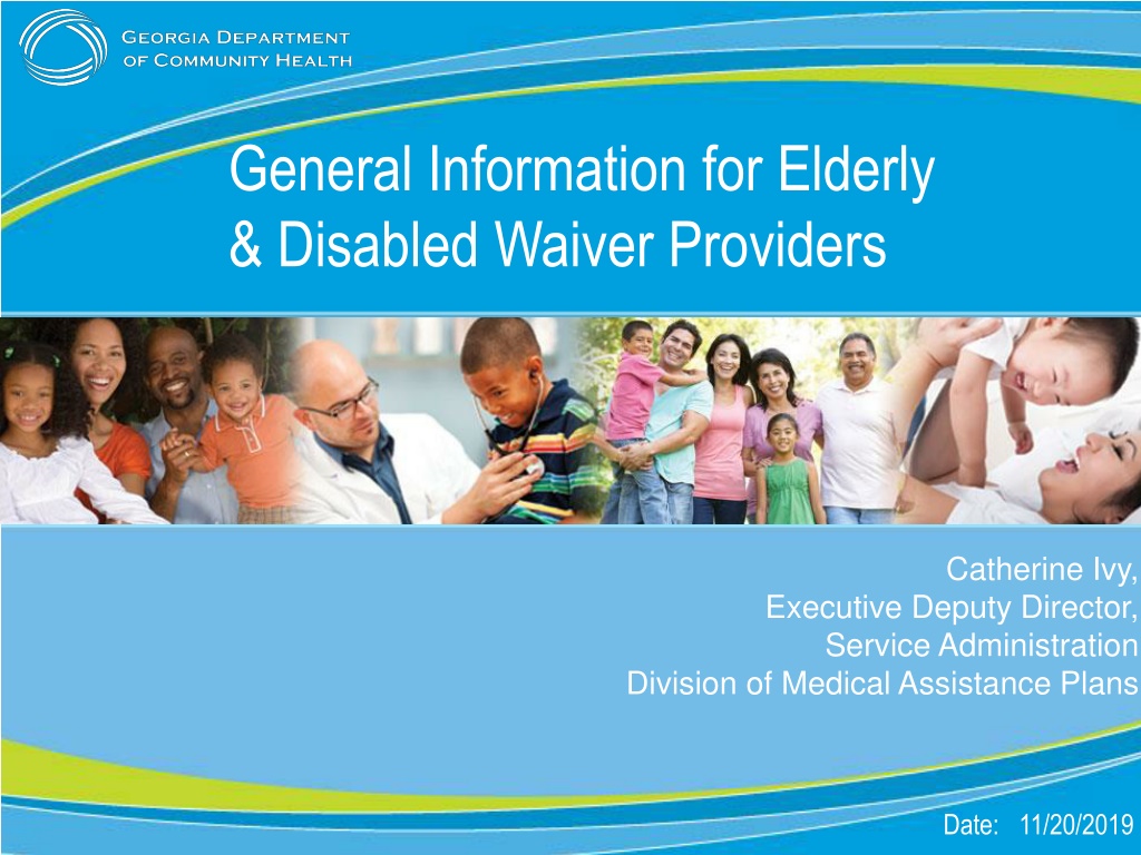 General Information for Elderly & Disabled Waiver Providers Catherine Ivy, Executive Deputy Director, Service Administration Division of Medical Assistance Plans Date: 11/20/2019