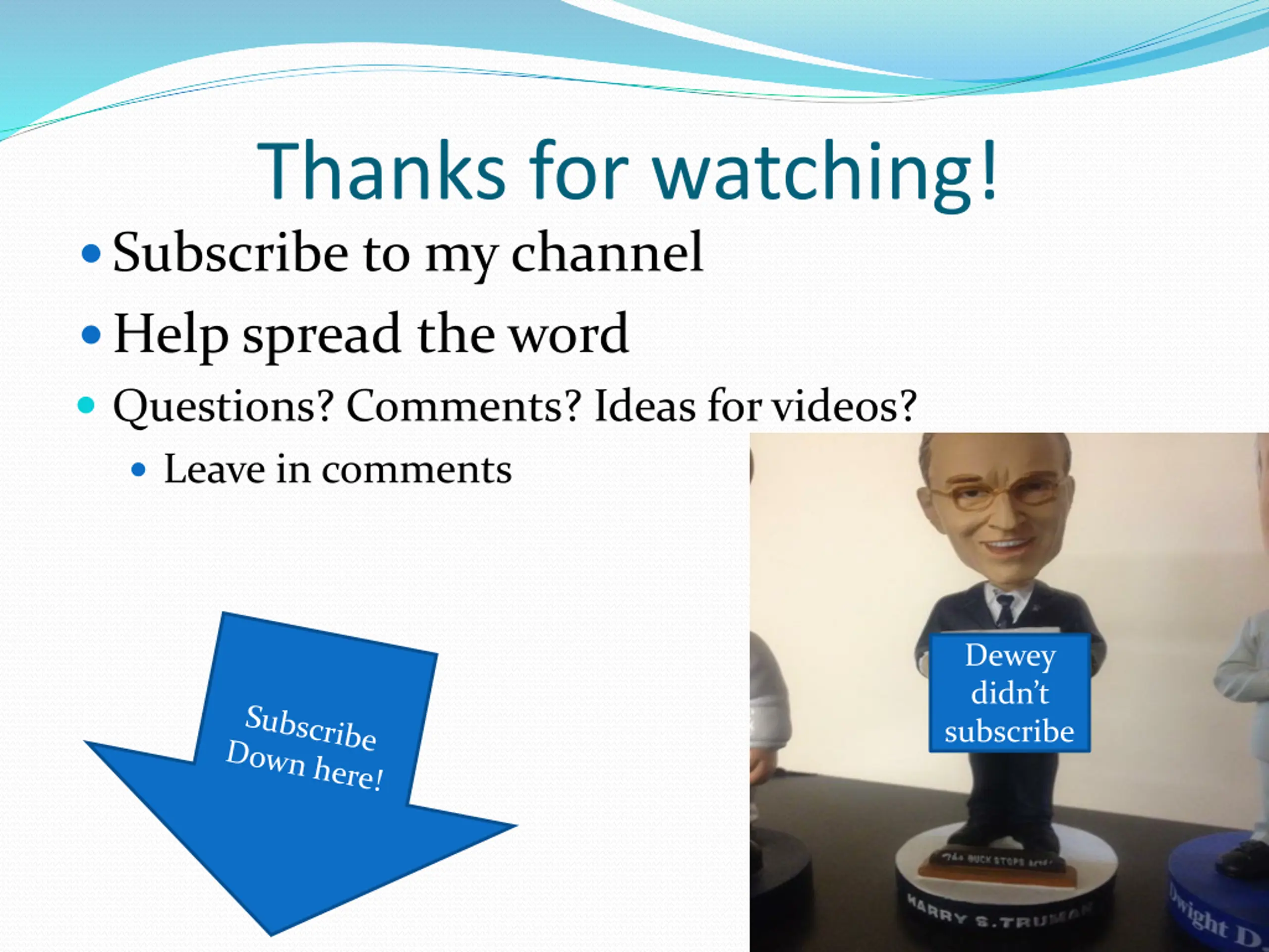 Thanks for watching! Subscribe to my channel Help spread the word Questions? Comments? Ideas for videos? Leave in comments Dewey didn t subscribe