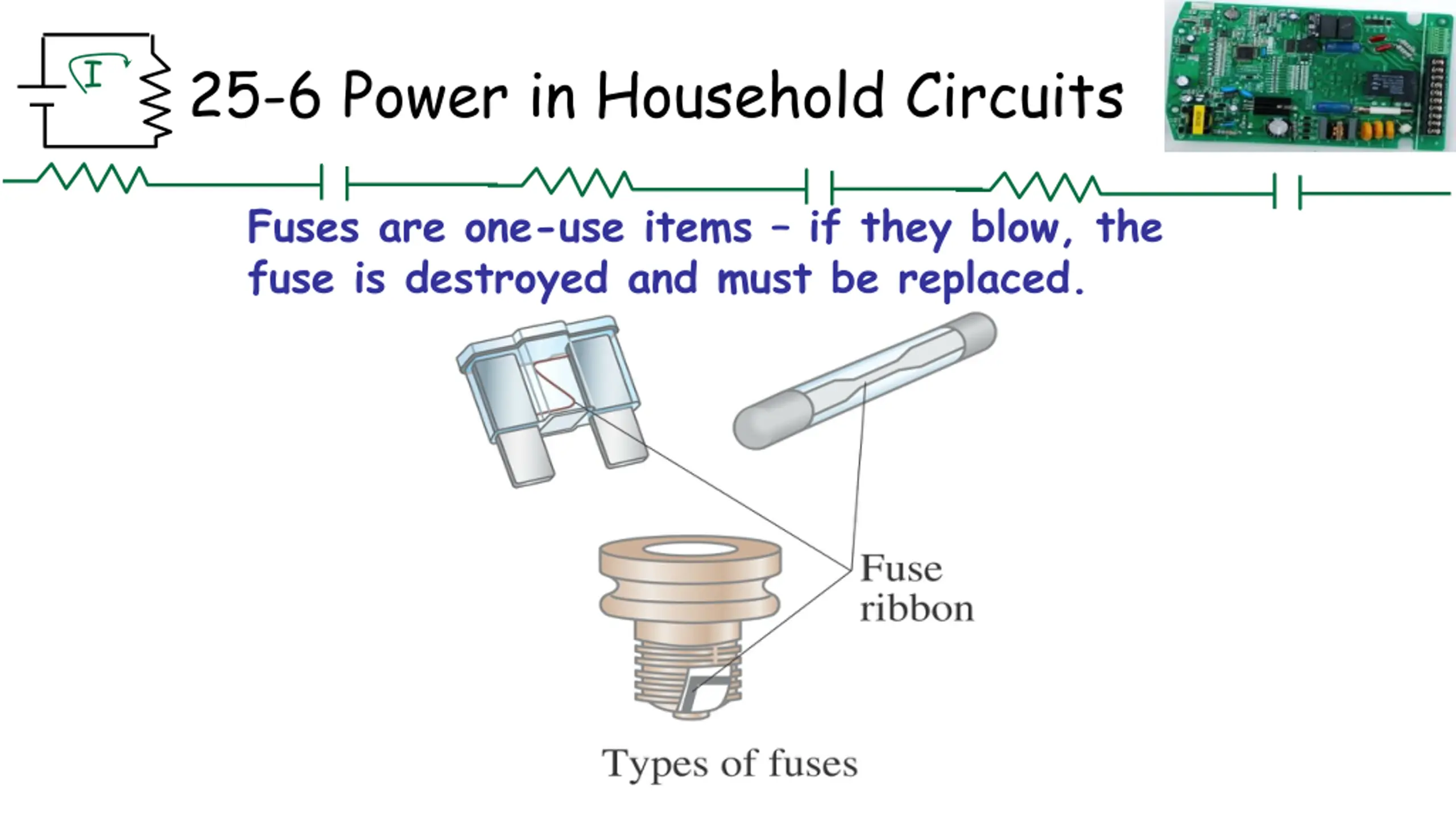 I 25-6 Power in Household Circuits Fuses are one-use items if they blow, the fuse is destroyed and must be replaced.