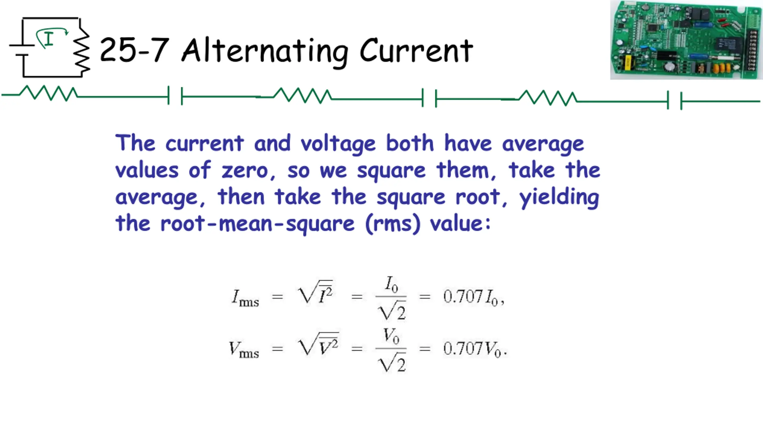 I 25-7 Alternating Current The current and voltage both have average values of zero, so we square them, take the average, then take the square root, yielding the root-mean-square (rms) value: