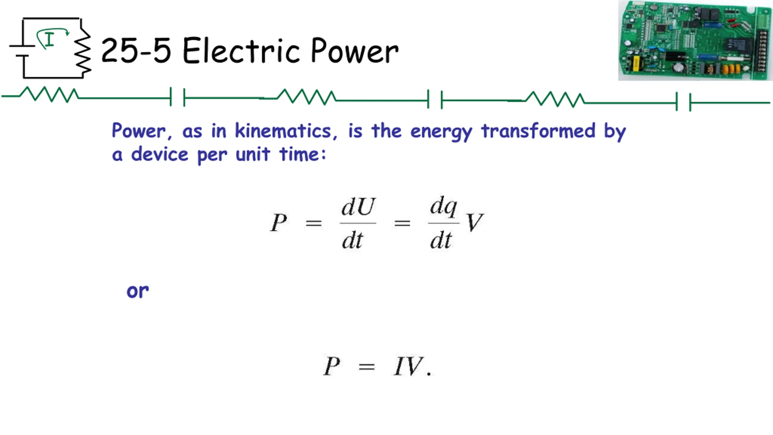 I 25-5 Electric Power Power, as in kinematics, is the energy transformed by a device per unit time: or