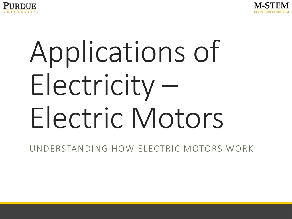 Applications of Electricity Electric Motors UNDERSTANDING HOW ELECTRIC MOTORS WORK