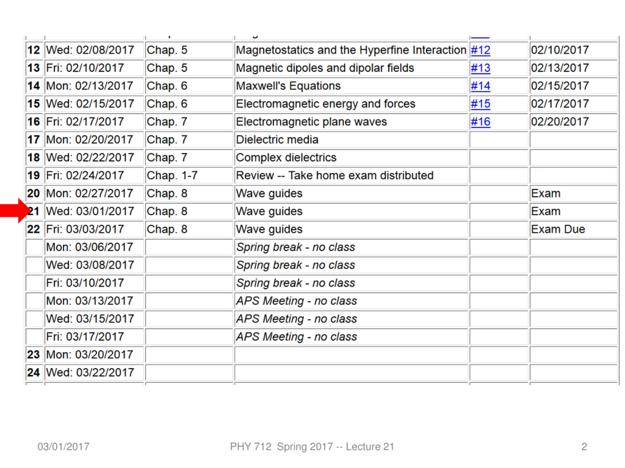 03/01/2017 PHY 712 Spring 2017 -- Lecture 21 2