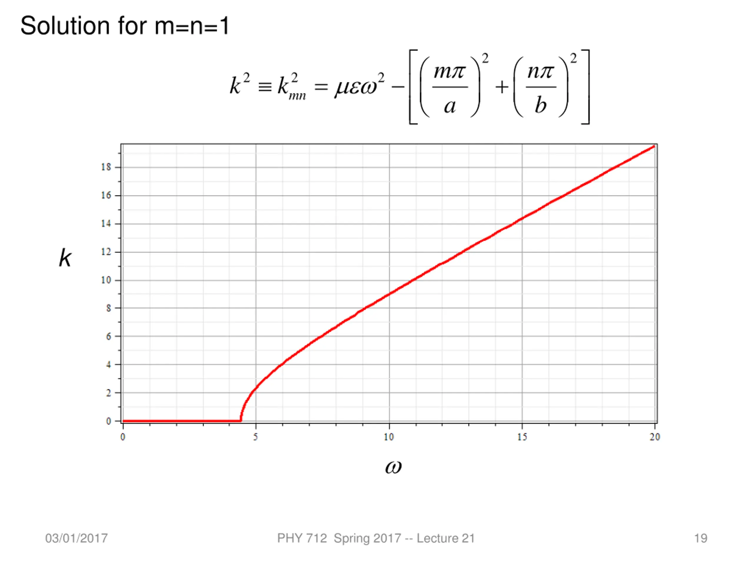 Solution for m=n=1 2 2 m n = + 2 2 mn 2 k k a b k 03/01/2017 PHY 712 Spring 2017 -- Lecture 21 19