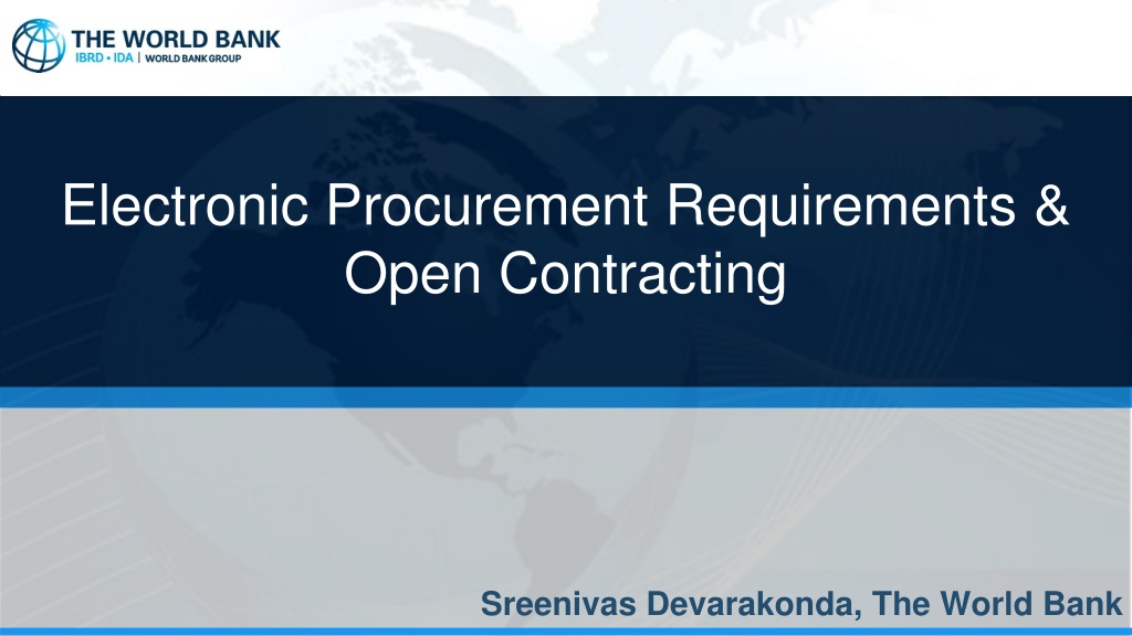 Electronic Procurement Requirements & Open Contracting Sreenivas Devarakonda, The World Bank