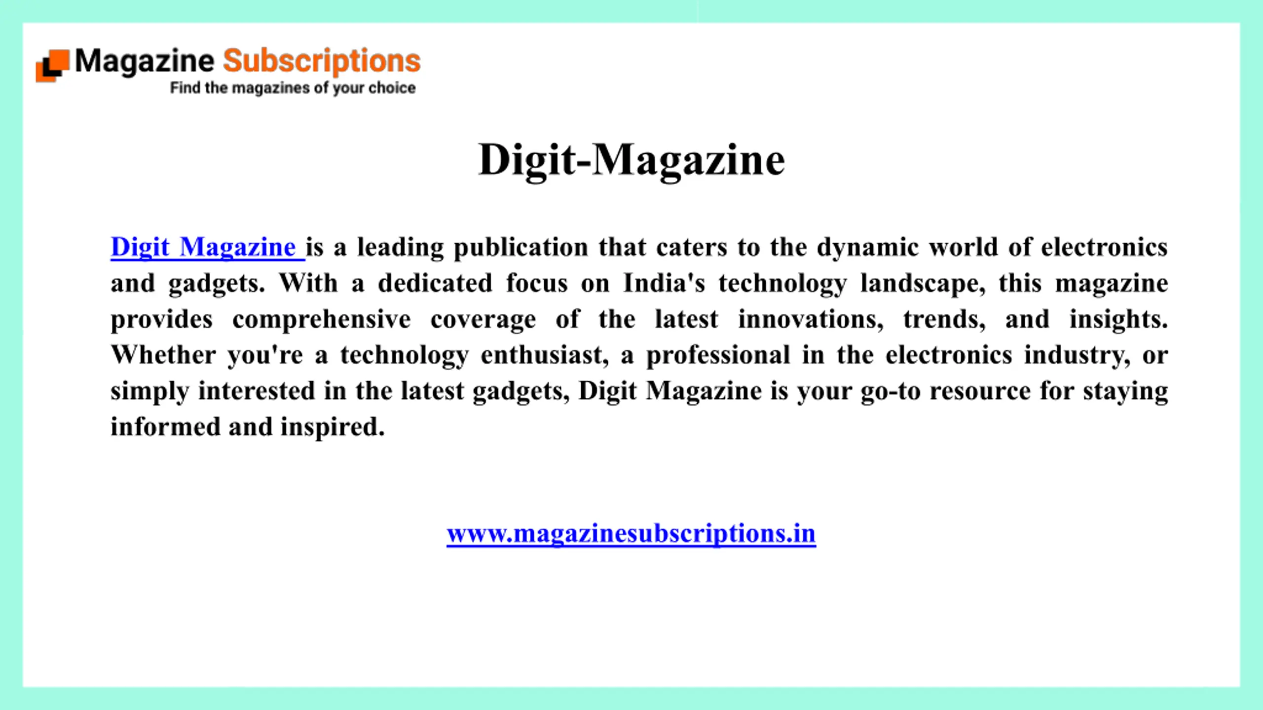 Digit-Magazine Digit Magazine is a leading publication that caters to the dynamic world of electronics and gadgets. With a dedicated focus on India's technology landscape, this magazine provides comprehensive coverage of the latest innovations, trends, and insights. Whether you're a technology enthusiast, a professional in the electronics industry, or simply interested in the latest gadgets, Digit Magazine is your go-to resource for staying informed and inspired. www.magazinesubscriptions.in