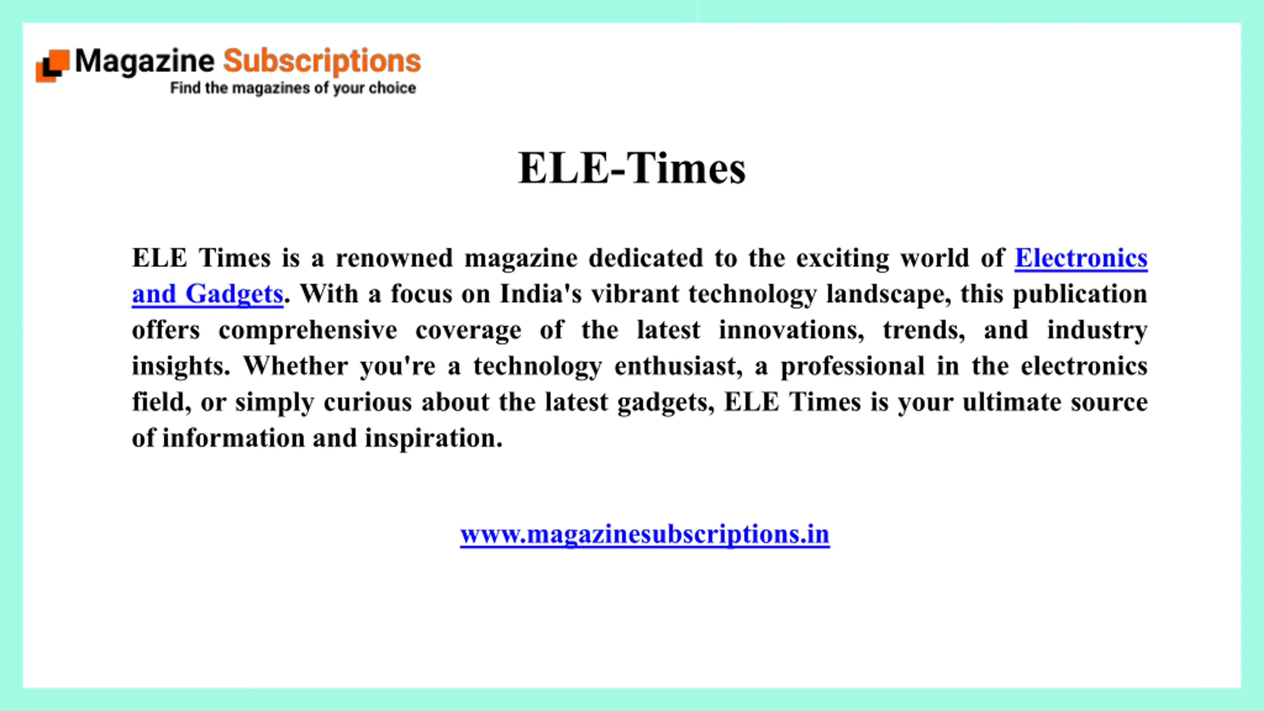 ELE-Times ELE Times is a renowned magazine dedicated to the exciting world of Electronics and Gadgets. With a focus on India's vibrant technology landscape, this publication offers comprehensive coverage of the latest innovations, trends, and industry insights. Whether you're a technology enthusiast, a professional in the electronics field, or simply curious about the latest gadgets, ELE Times is your ultimate source of information and inspiration. www.magazinesubscriptions.in