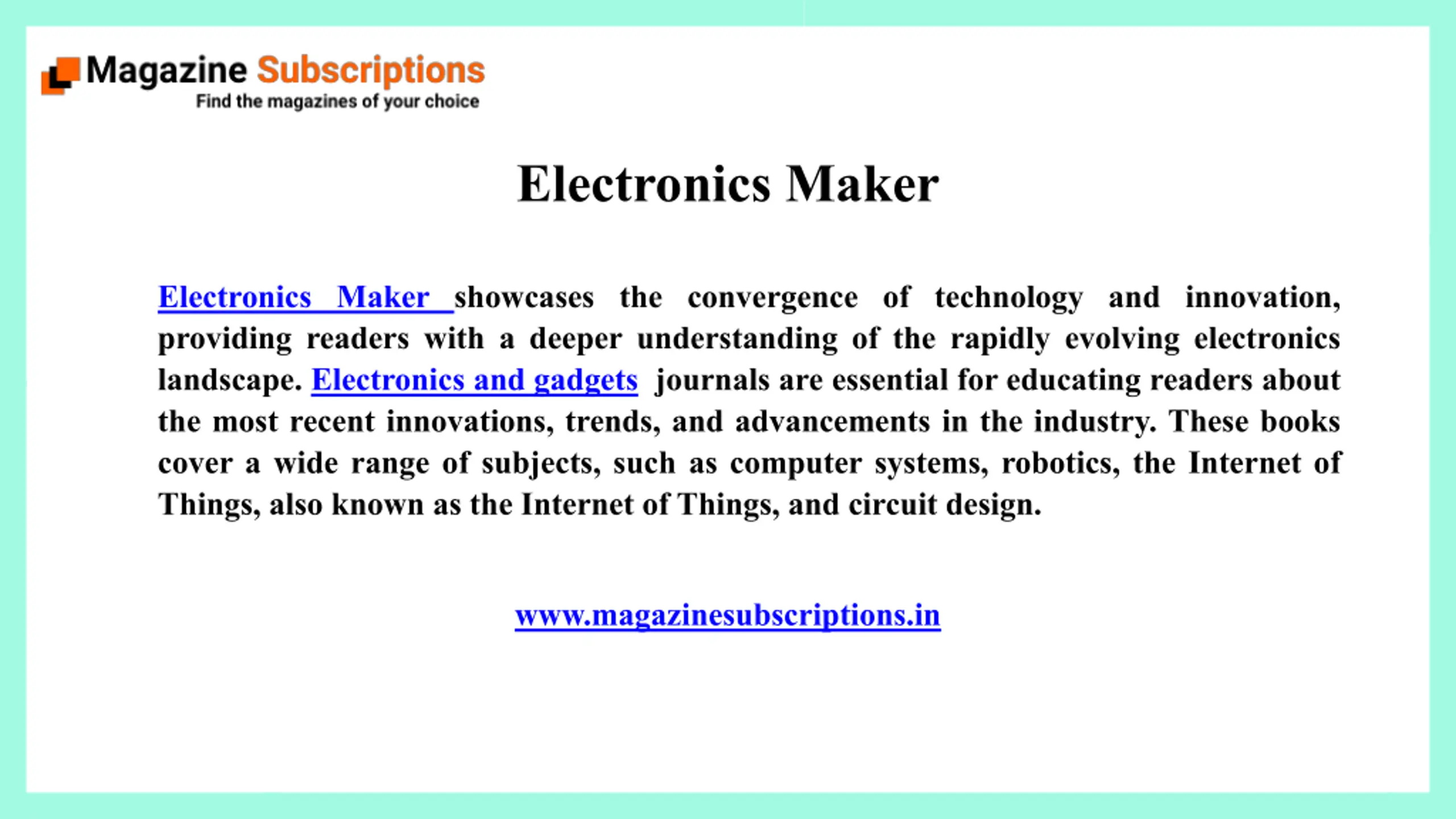 Introductions It is to be noted and well understood that the electronics and gadget magazines and journals are dedicated to providing the latest and most credible information about the newest devices hitting the market, the latest news, and the hottest deals. This category caters to electronics design engineers and experts, offering component insights, industry analysis, and tech news www.magazinesubscriptions.in