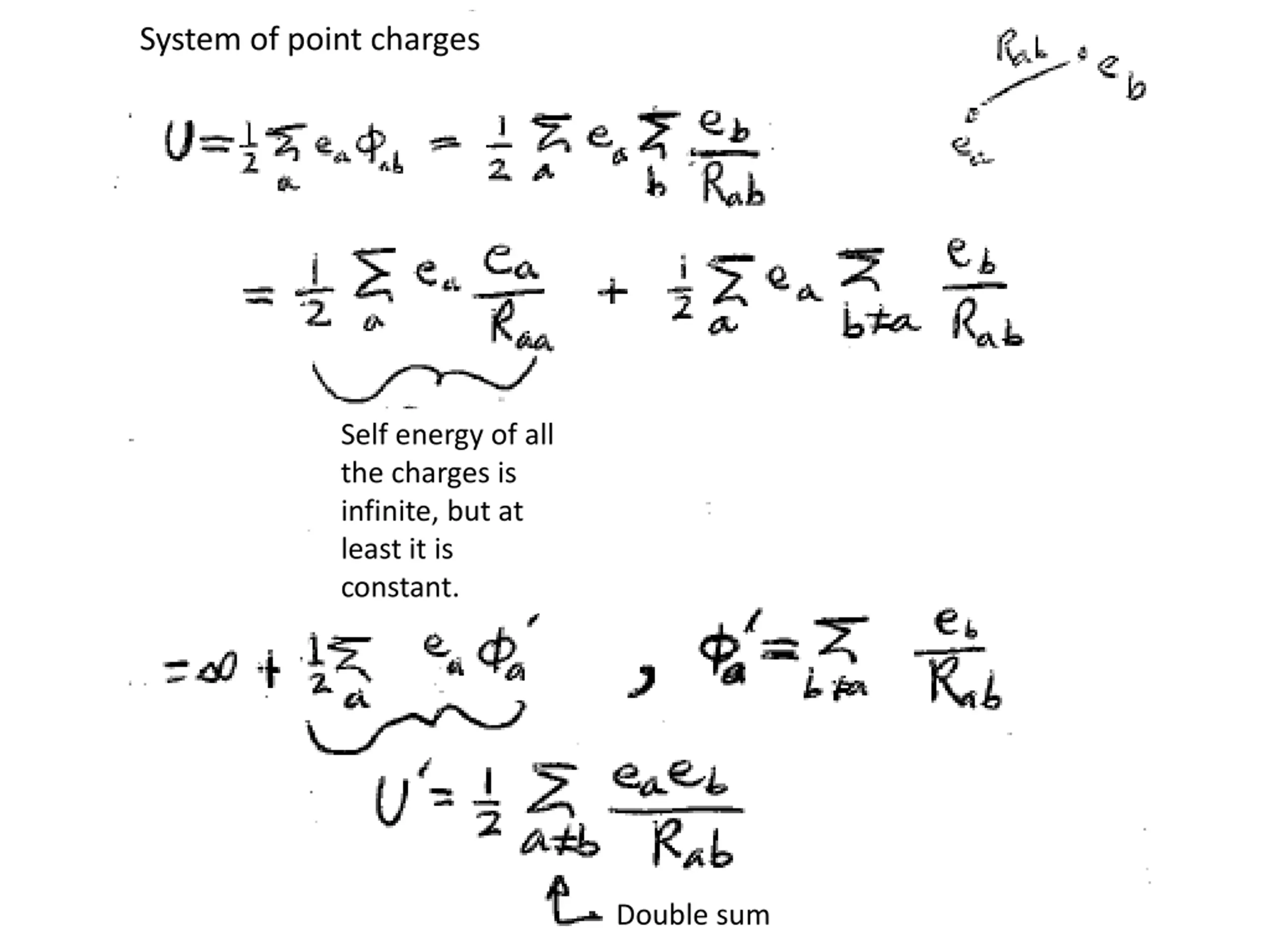 System of point charges Self energy of all the charges is infinite, but at least it is constant. Double sum