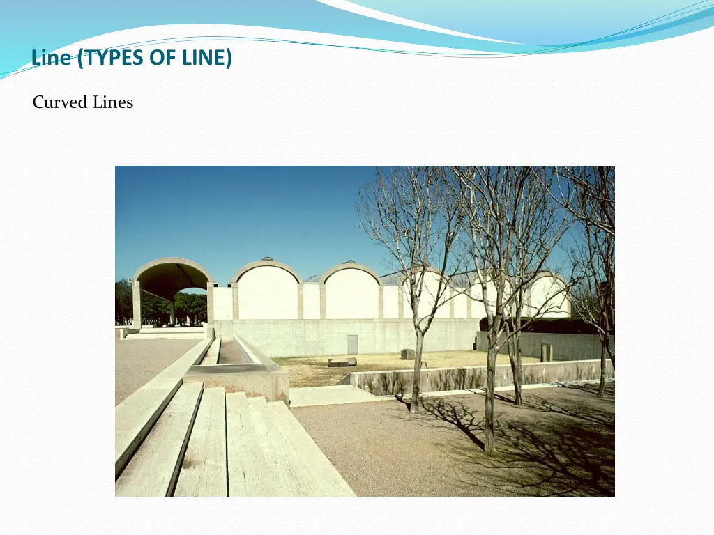 Line (TYPES OF LINE) Curved Lines Indicates soft, graceful and flowing movements Curved Lines Indicates soft, graceful and flowing movements