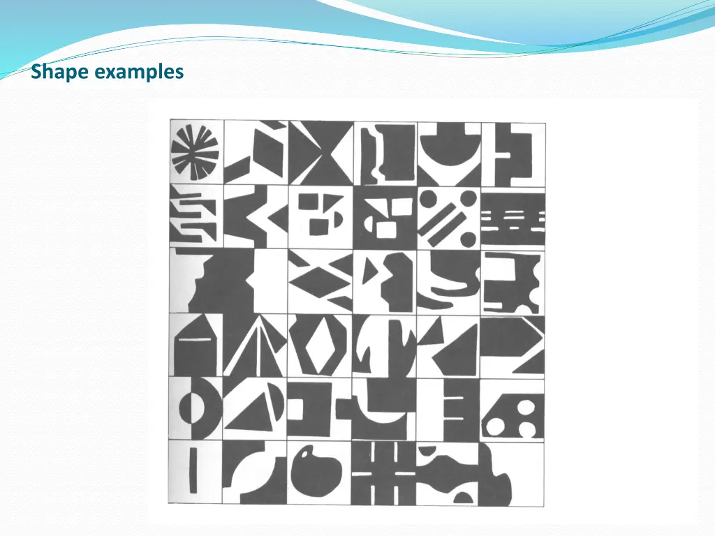 Shape The simplest definition of shape is a closed contour, an element defined by its perimeter.