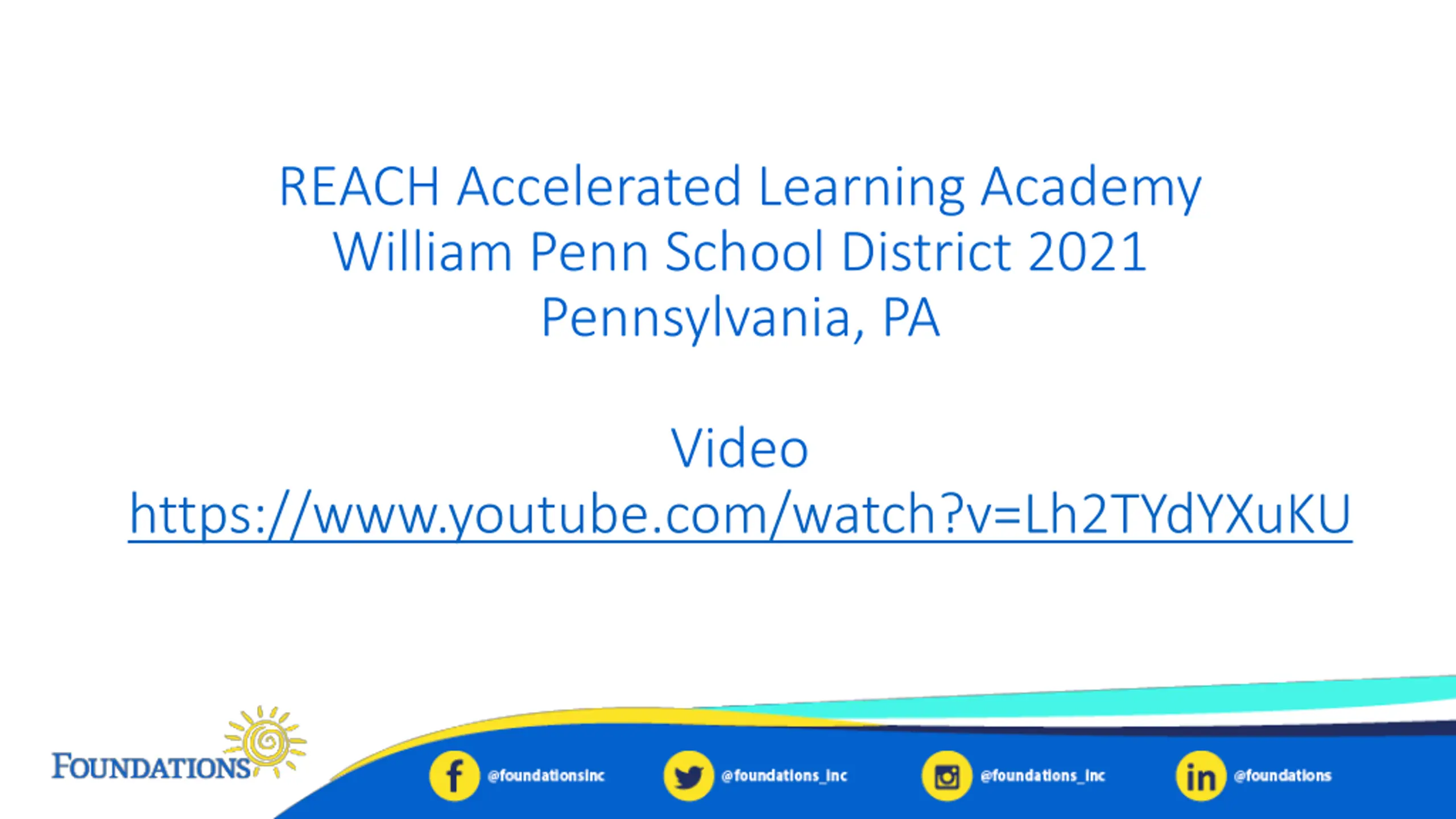 REACH Accelerated Learning Academy William Penn School District 2021 Pennsylvania, PA Video https://www.youtube.com/watch?v=Lh2TYdYXuKU