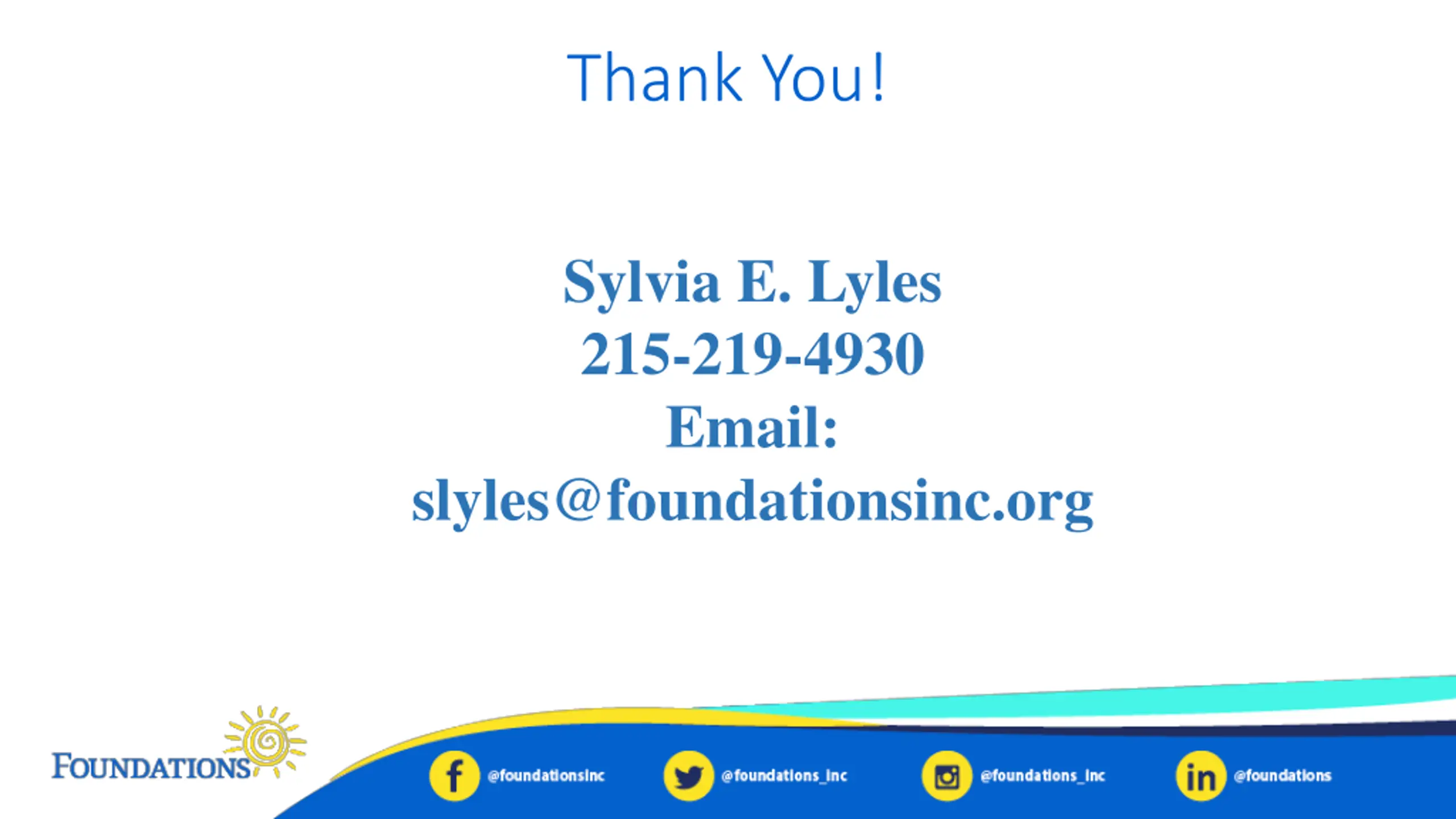 Thank You! Sylvia E. Lyles 215-219-4930 Email: slyles@foundationsinc.org