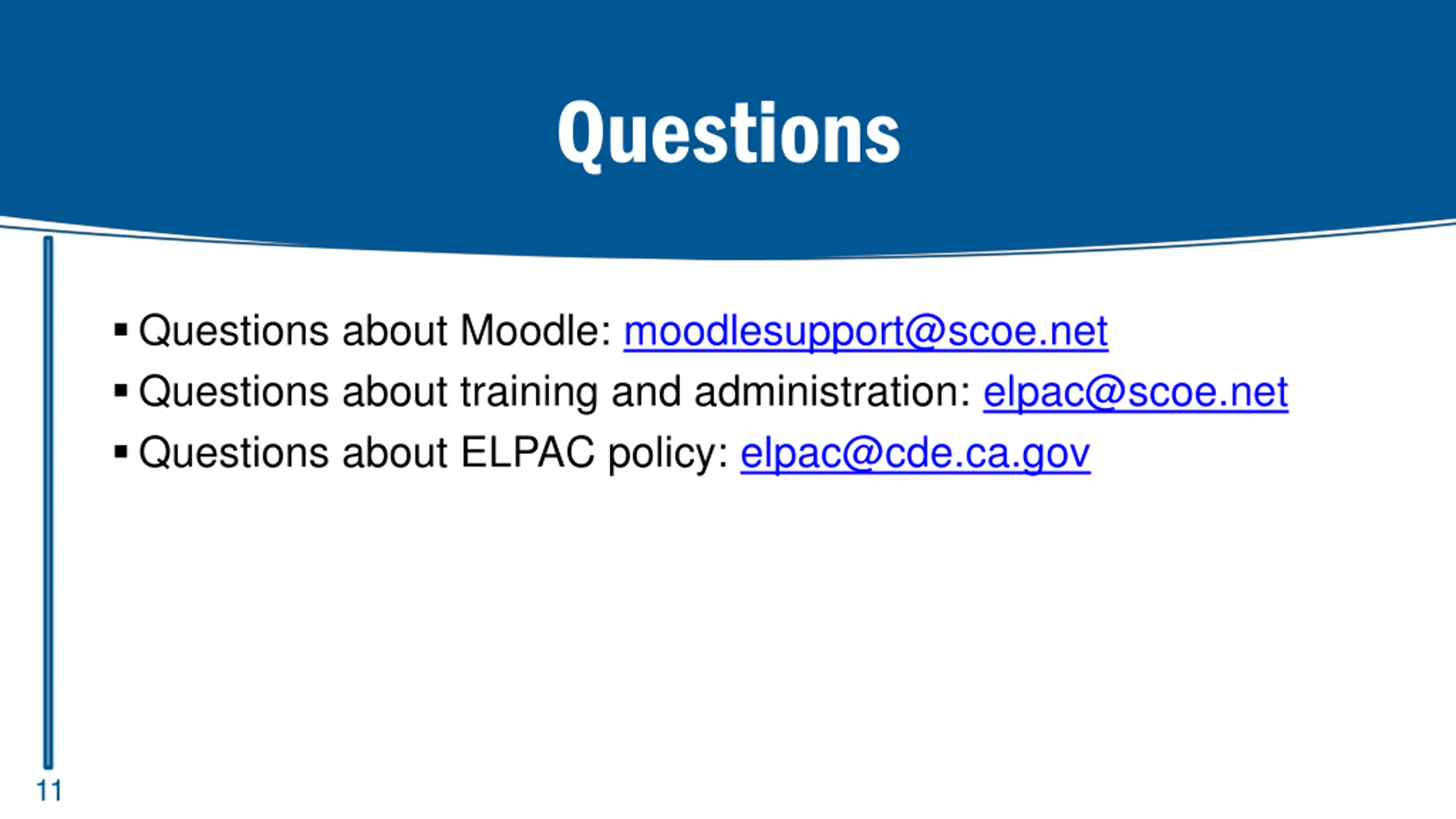 Questions Questions about Moodle: moodlesupport@scoe.net Questions about training and administration: elpac@scoe.net Questions about ELPAC policy: elpac@cde.ca.gov 11