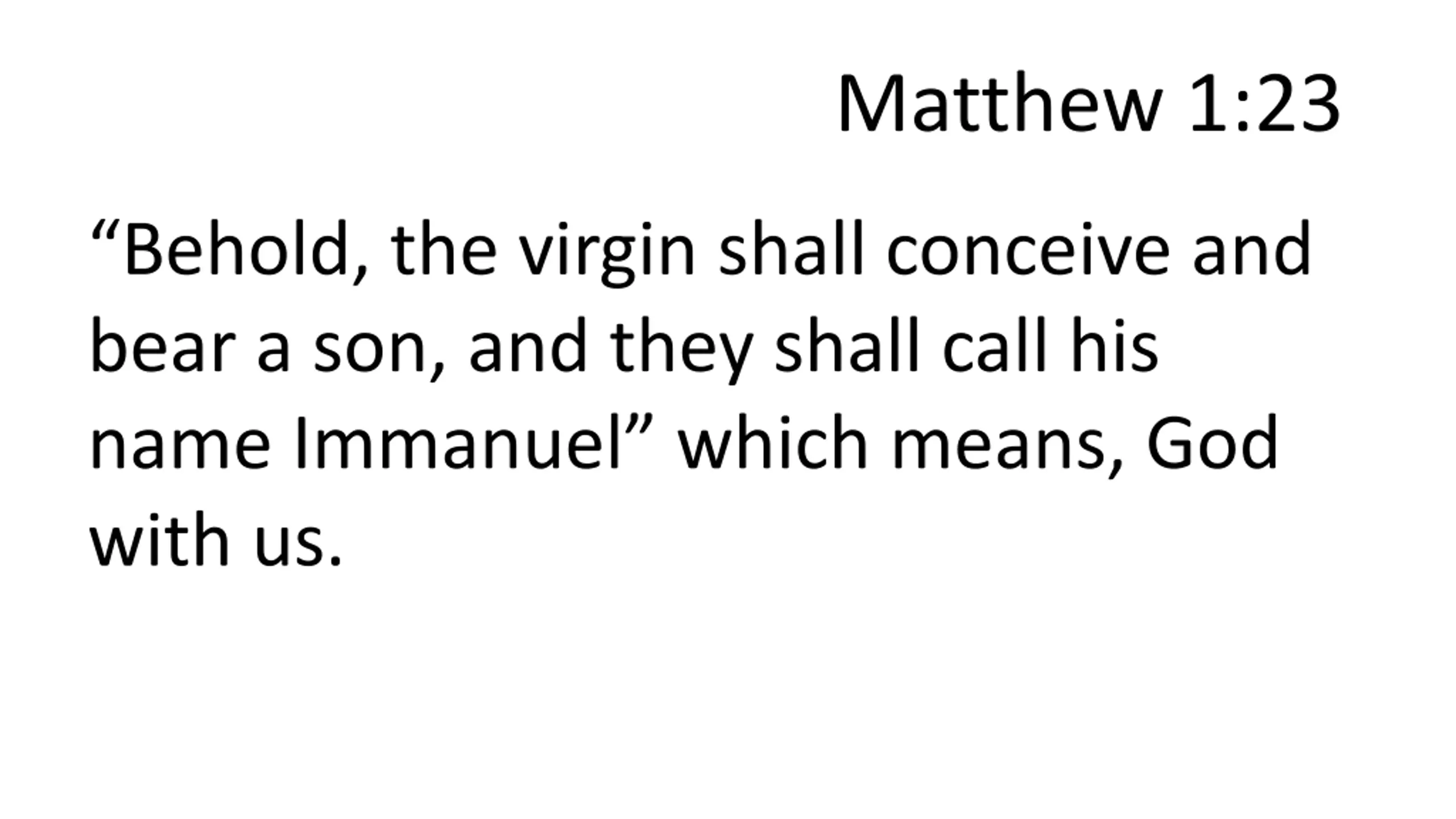 Matthew 1:23 Behold, the virgin shall conceive and bear a son, and they shall call his name Immanuel which means, God with us.
