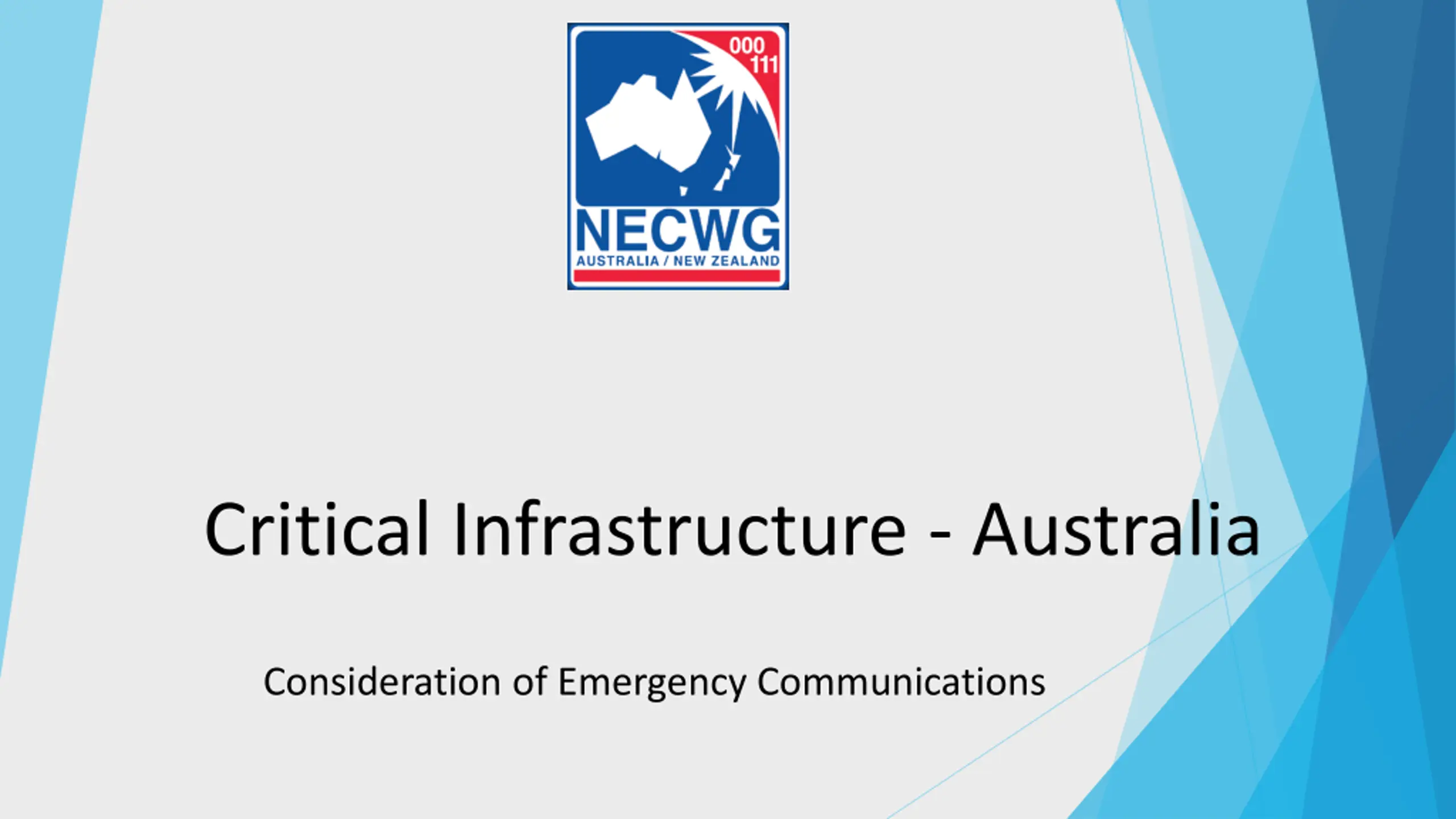 NECWG White Paper The NECWG has been preparing a White Paper for presentation to the new Minister for Communications. The paper embraces the establishment of the Triple Zero Custodian and places it at the centre of the improvement of the Triple Zero service with key recommendations of the white paper including: The establishment of national security guidelines for emergency communications o Assessment of the inclusion of the infrastructure of the Triple Zero ecosystem as critical infrastructure o The White Paper is to be released shortly.