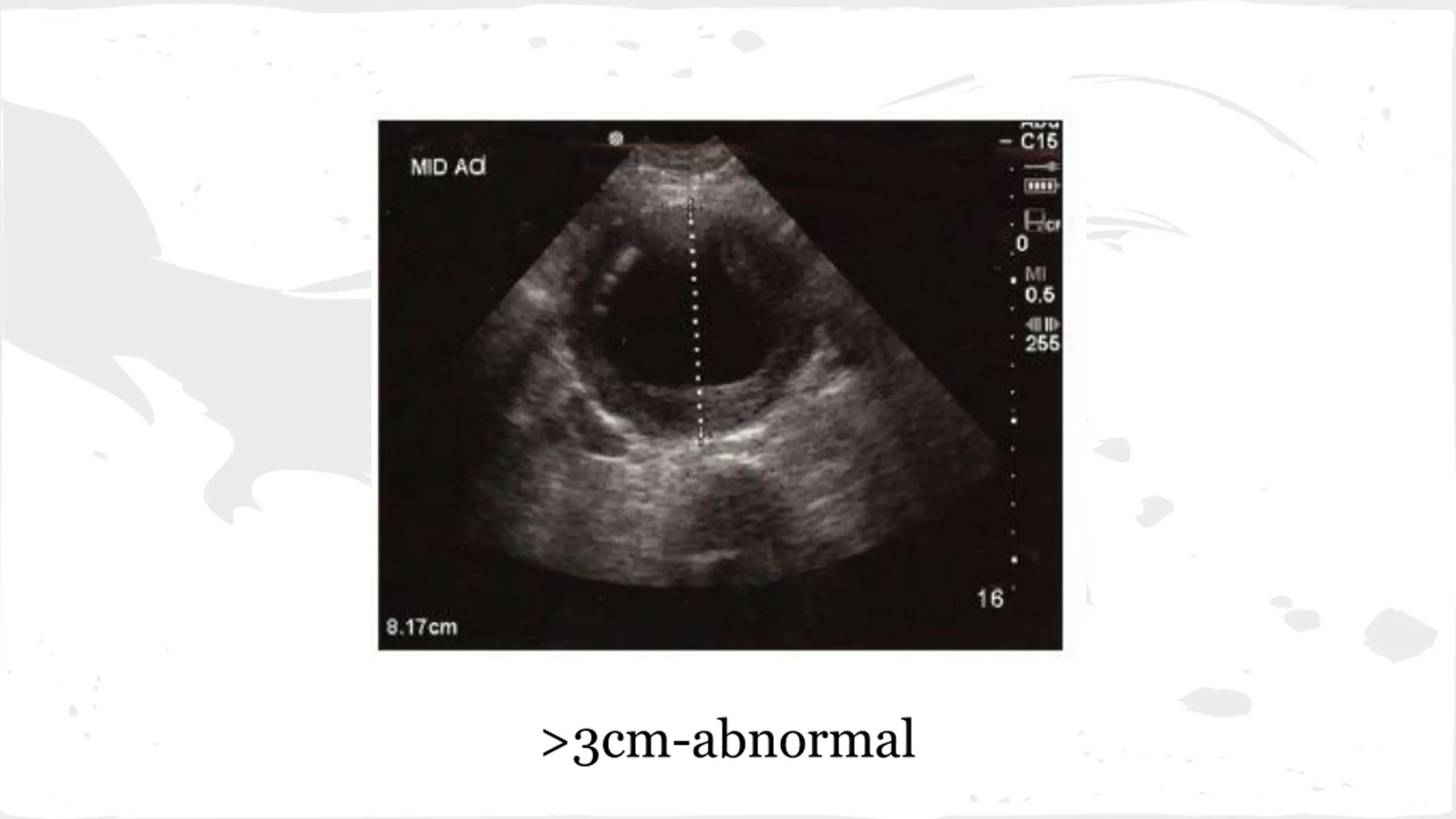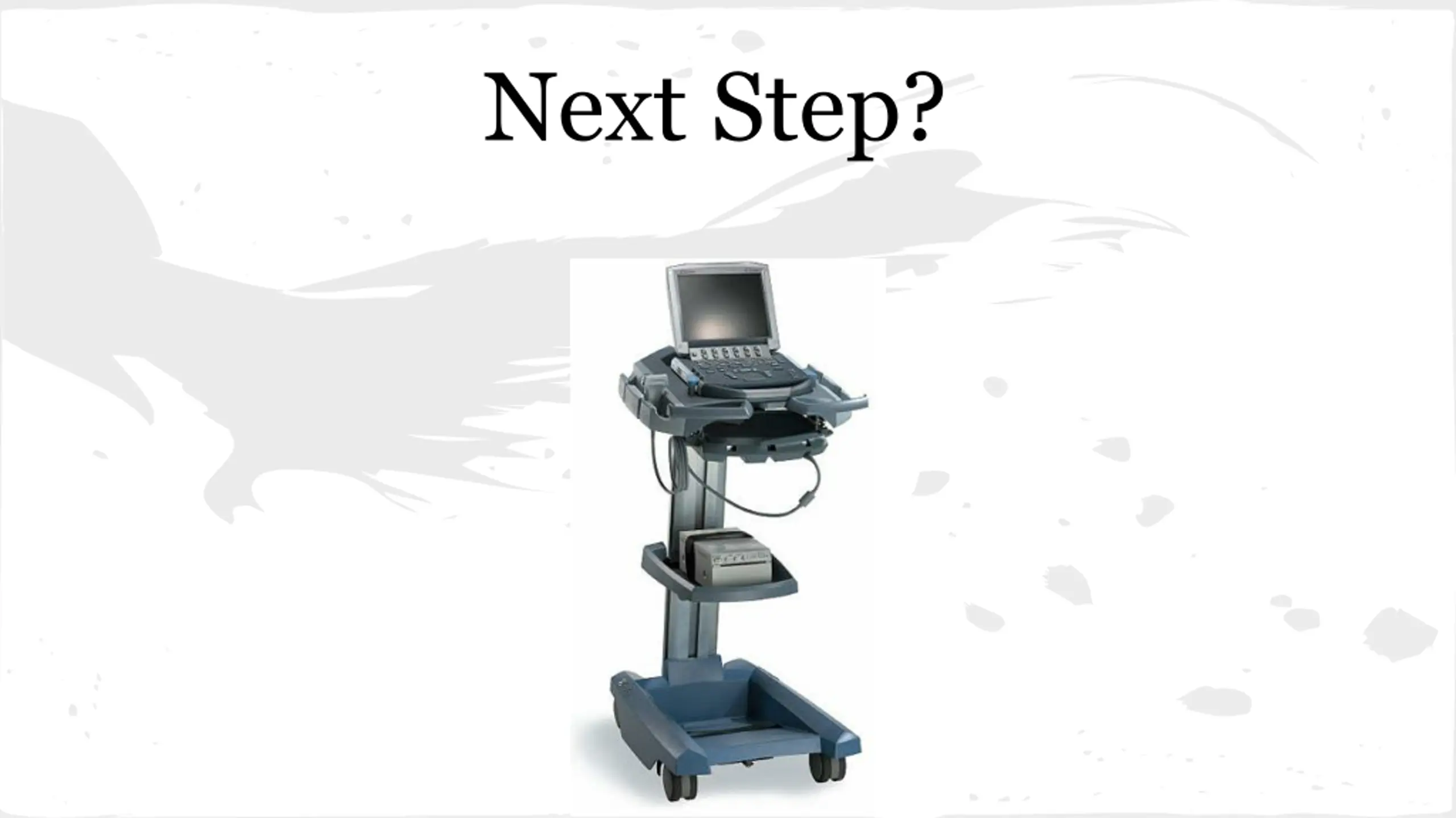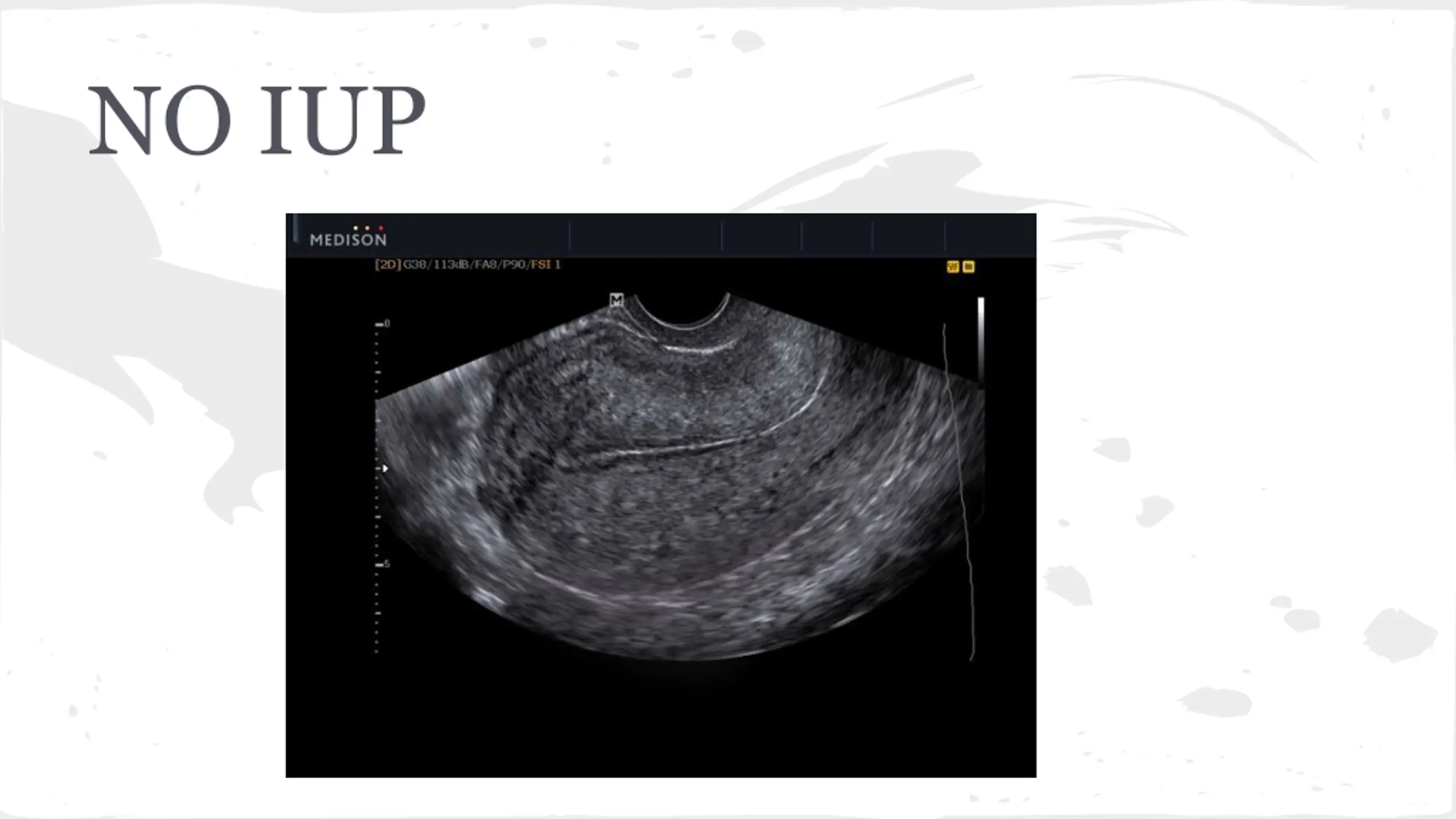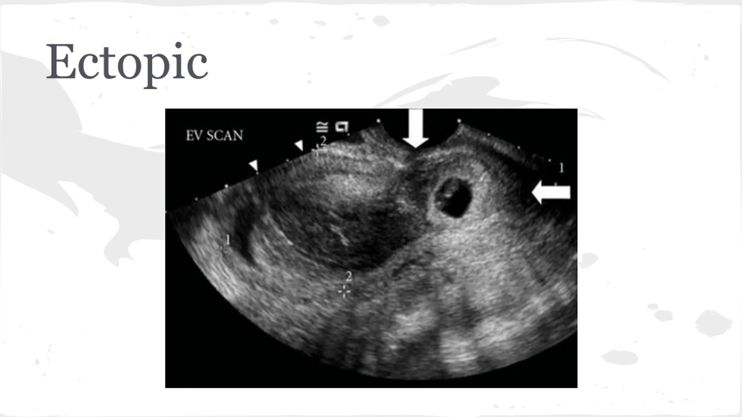 Findings Gradual Onset, +nausea, +anorexia WBC 12, Hb-14, Lipase-nml, Alk Phos-nml Urine HCG--POSITIVE Quant Beta HCG-5,000 Next Step?