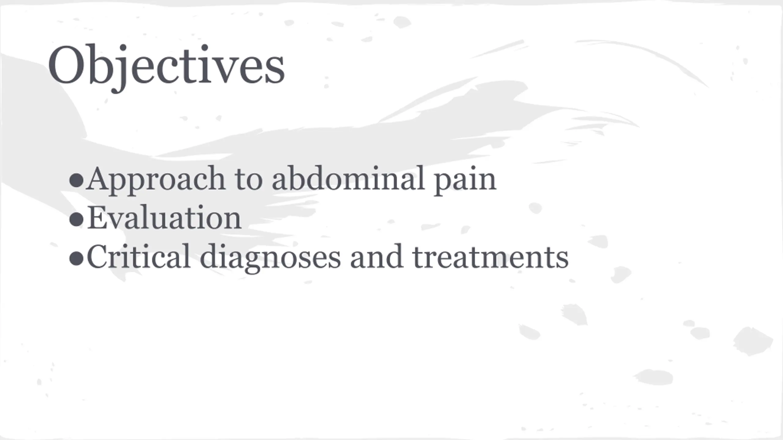 Objectives Approach to abdominal pain Evaluation Critical diagnoses and treatments
