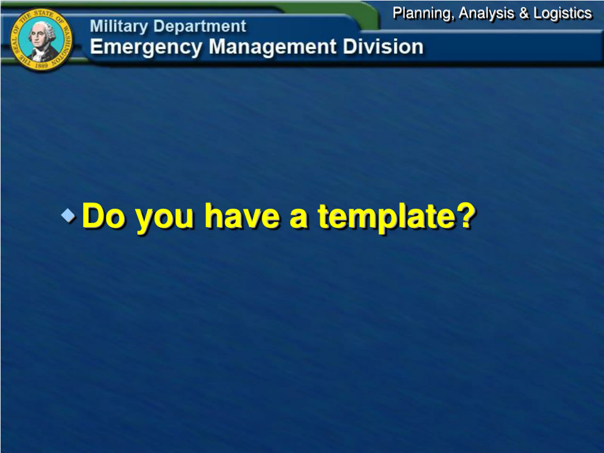 Planning, Analysis & Logistics Do you have a template?