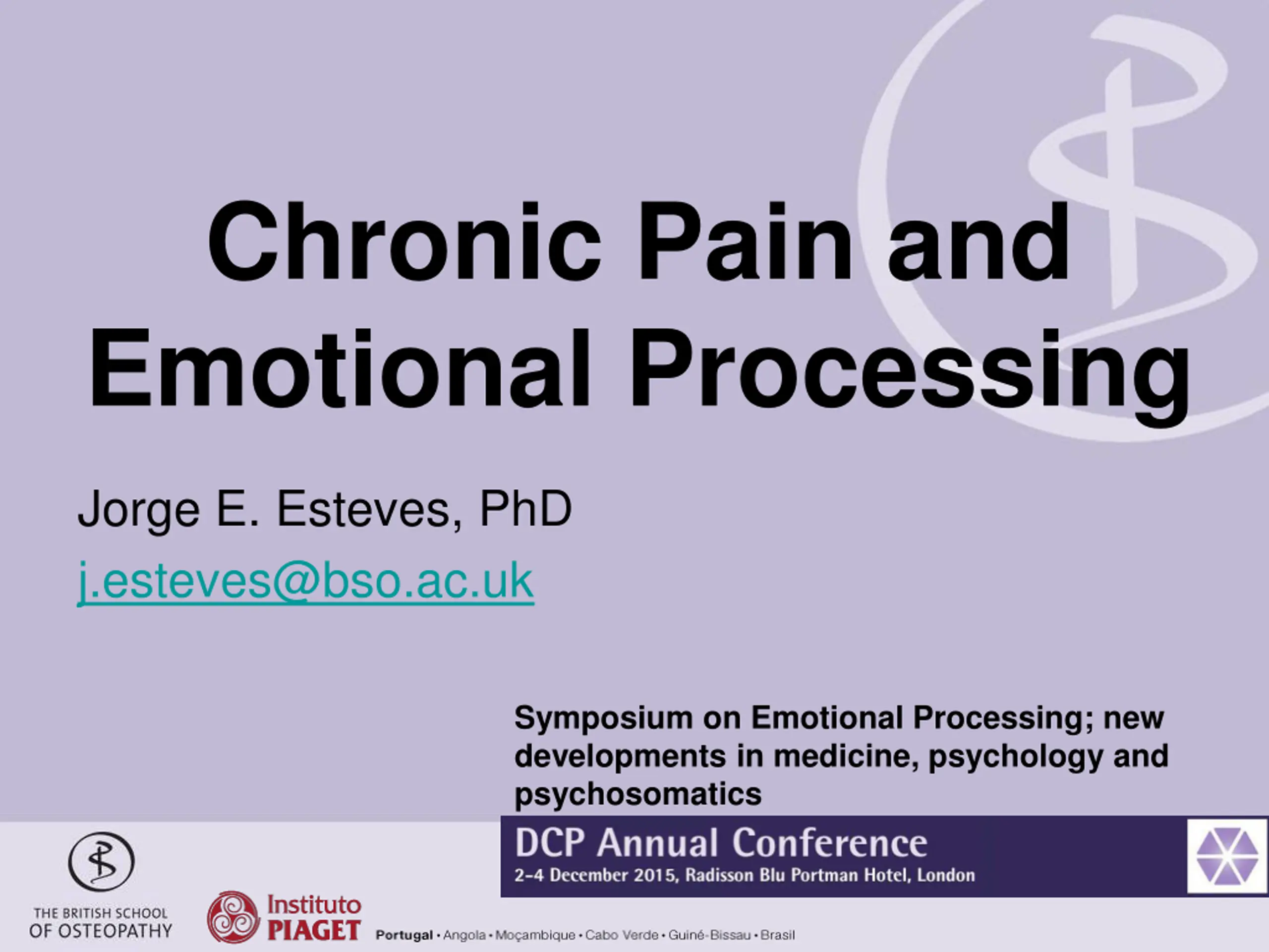 Chronic Pain and Emotional Processing Jorge E. Esteves, PhD j.esteves@bso.ac.uk Symposium on Emotional Processing; new developments in medicine, psychology and psychosomatics