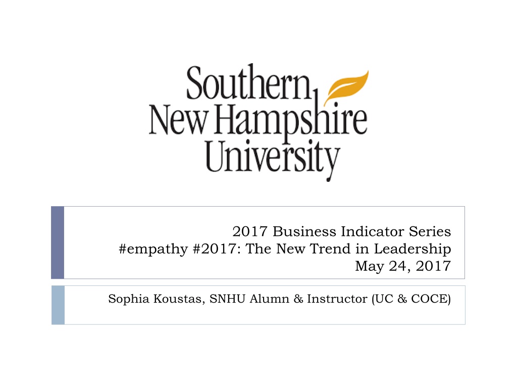 2017 Business Indicator Series #empathy #2017: The New Trend in Leadership May 24, 2017 Sophia Koustas, SNHU Alumn & Instructor (UC & COCE)