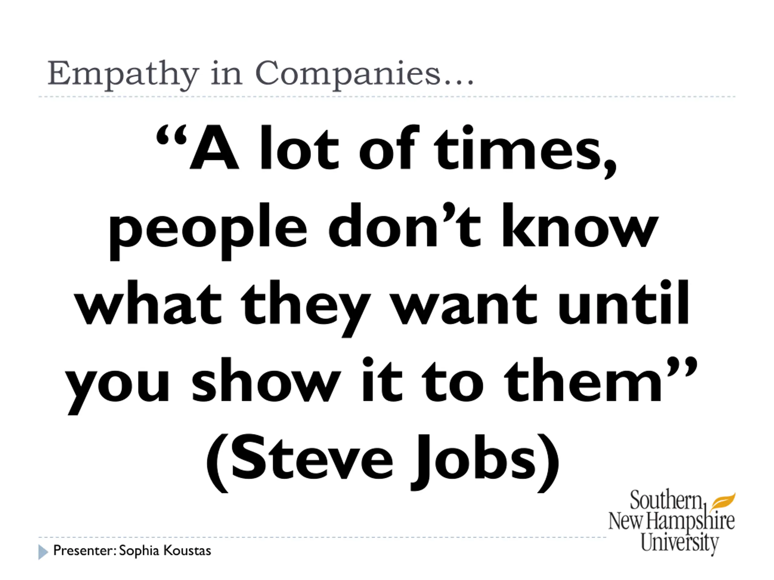 Empathy in Companies A lot of times, people don t know what they want until you show it to them (Steve Jobs) Presenter: Sophia Koustas
