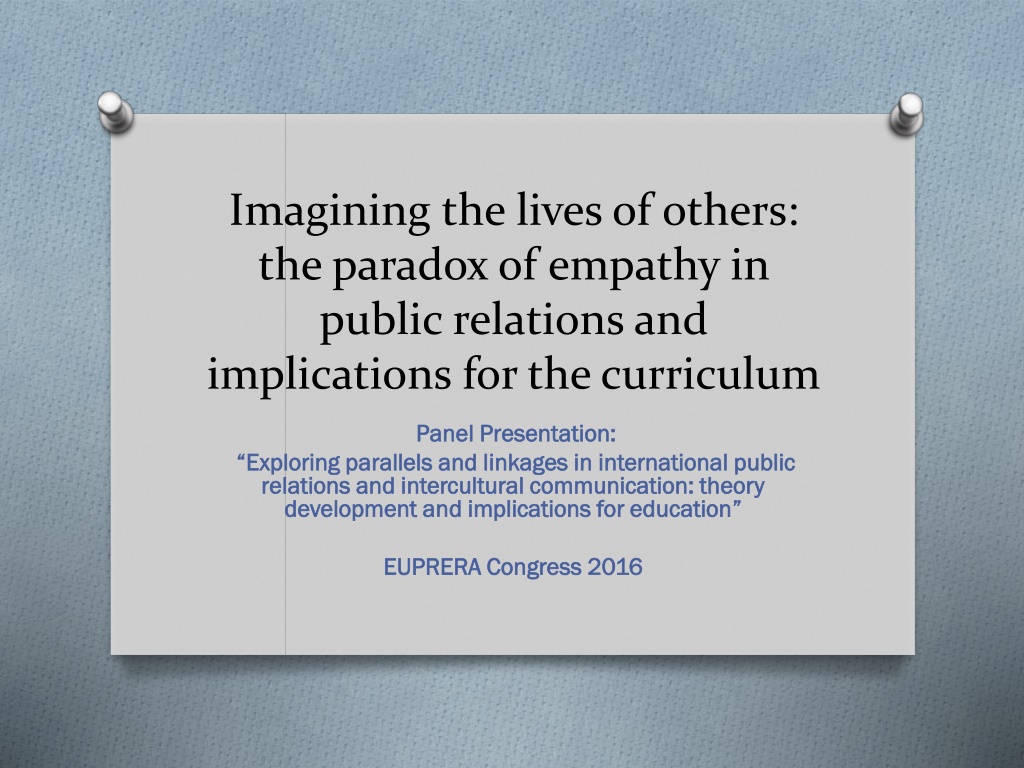 Imagining the lives of others: the paradox of empathy in public relations and implications for the curriculum Panel Presentation: Panel Presentation: Exploring parallels and linkages in international public Exploring parallels and linkages in international public relations and intercultural communication: theory relations and intercultural communication: theory development and implications for education development and implications for education EUPRERA Congress 2016 EUPRERA Congress 2016