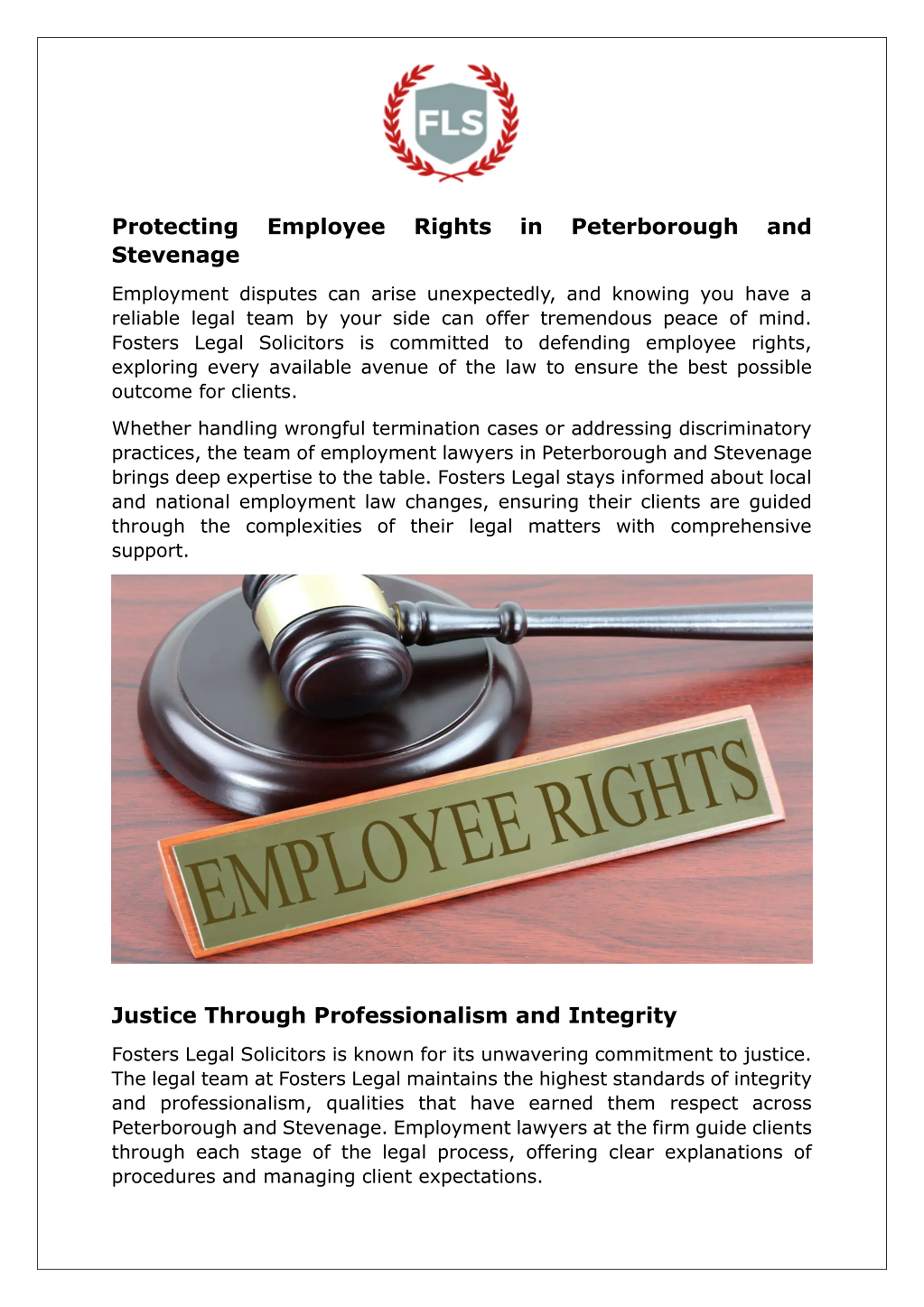 Clients trust Fosters Legal for its transparent, open service. Whether its processing paperwork, negotiating settlements, or representing clients in court, Fosters Legal ensures meticulous attention to detail and a dedication to achieving just outcomes for all employment cases. Why Choose Fosters Legal Solicitors for Employment Matters? With a deep understanding of employment law and a client-centric approach, Fosters Legal has become the go-to choice for individuals seeking help with employment-related legal issues in both Peterborough and Stevenage. Their proactive strategies and personalized care have brought relief and justice to many clients facing employment disputes. Whether you re seeking an employment lawyer in Peterborough or an employment lawyer in Stevenage, Fosters Legal offers the experience and expertise needed to navigate complex employment law matters. Their team is dedicated to supporting clients in understanding and protecting their rights, providing peace of mind when it s needed most. CONTACT INFORMATION Website https://fosterslegal.co.uk/ Mob - 07572 373 011 Email- solicitors@fosterslegal.co.uk